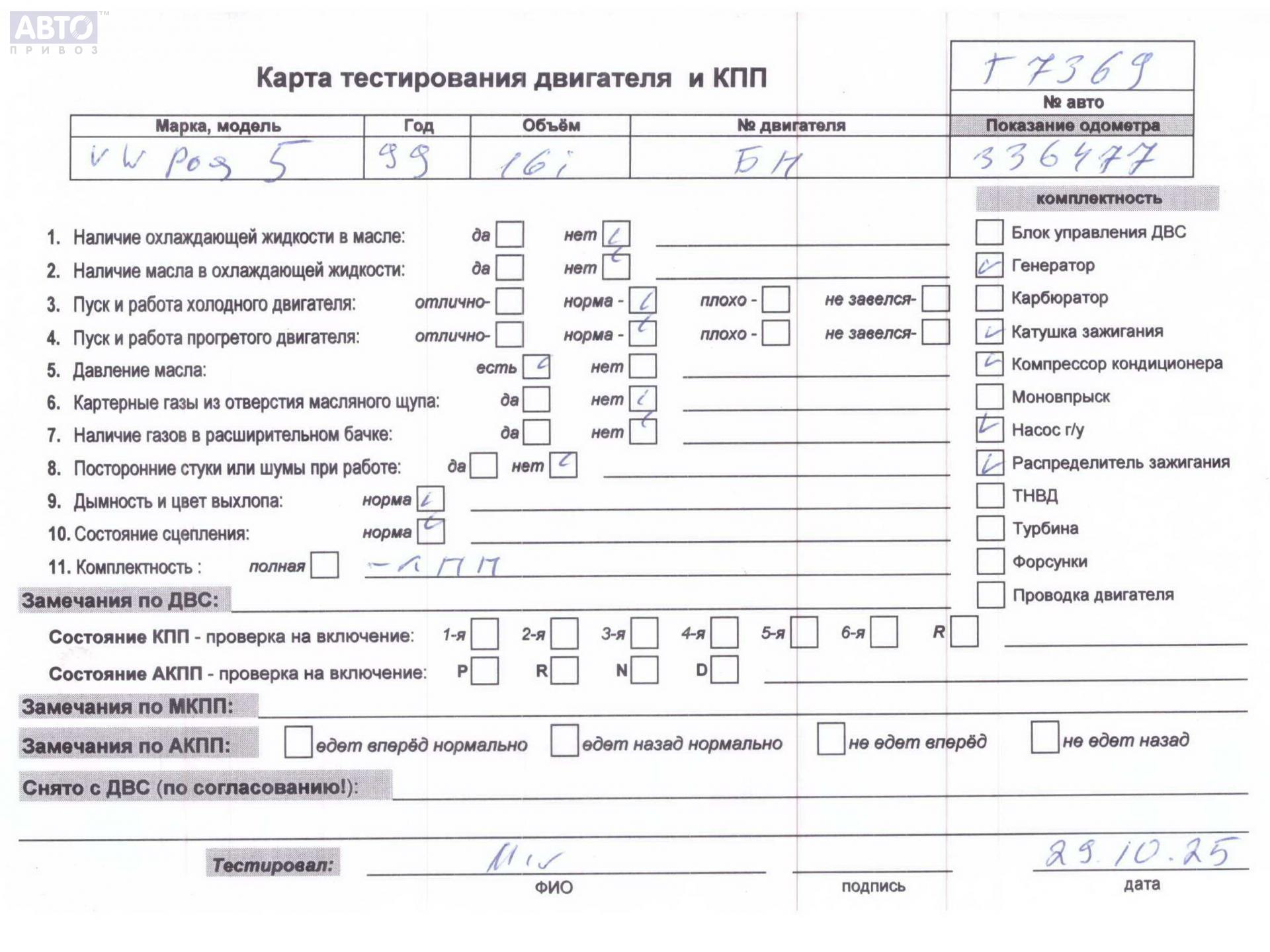 | Автомобиль / VIN: | T7369 WVWZZZ3BZYP227306 |