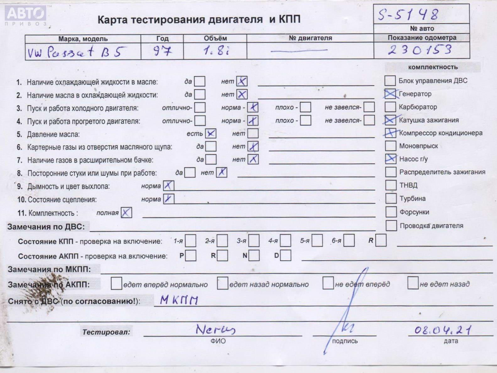 | Марка / Модель / Год: | Volkswagen Passat B5 1997 |
