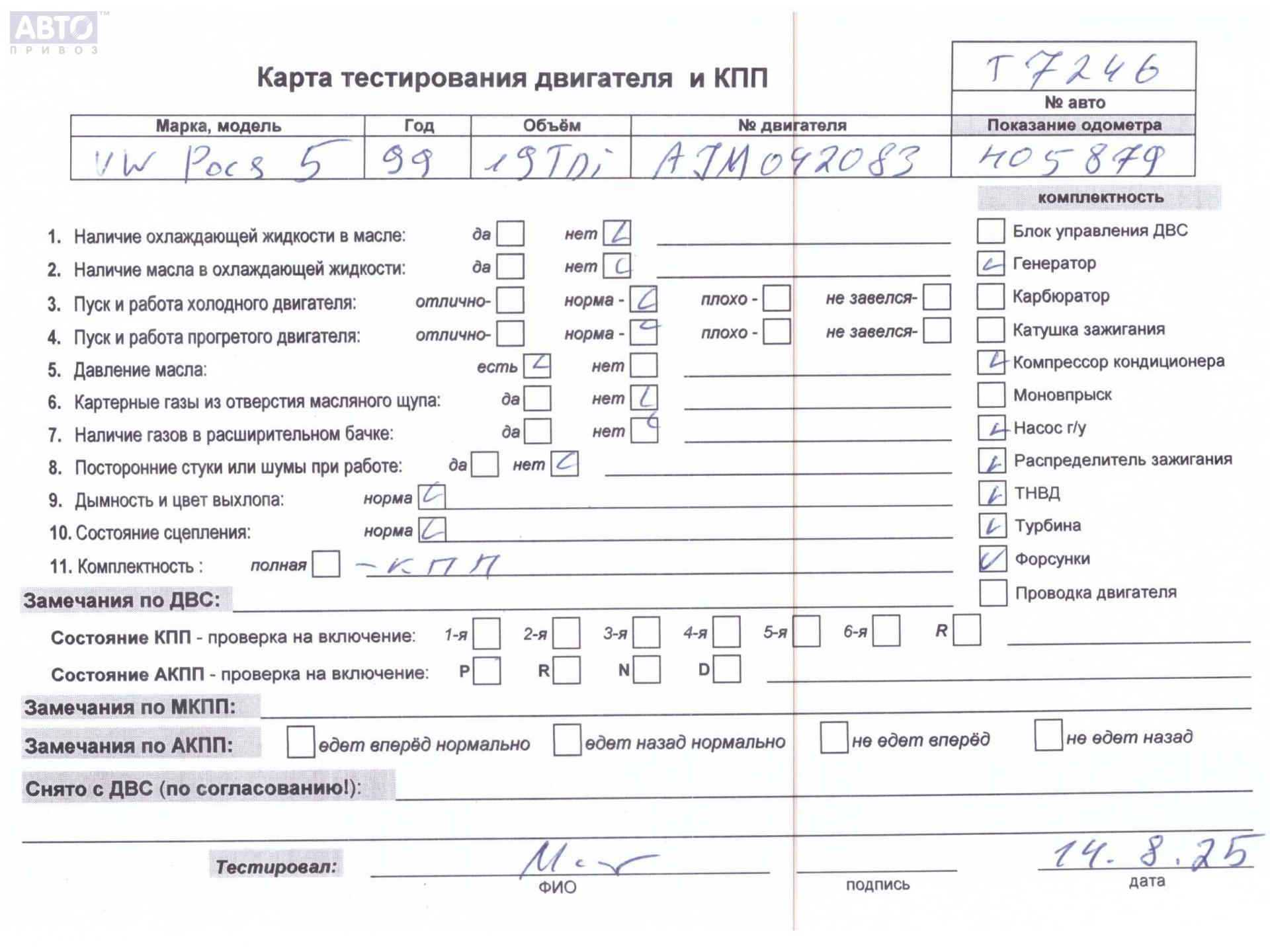 | Автомобиль / VIN: | T7246 WVWZZZ3BZYE026387 |