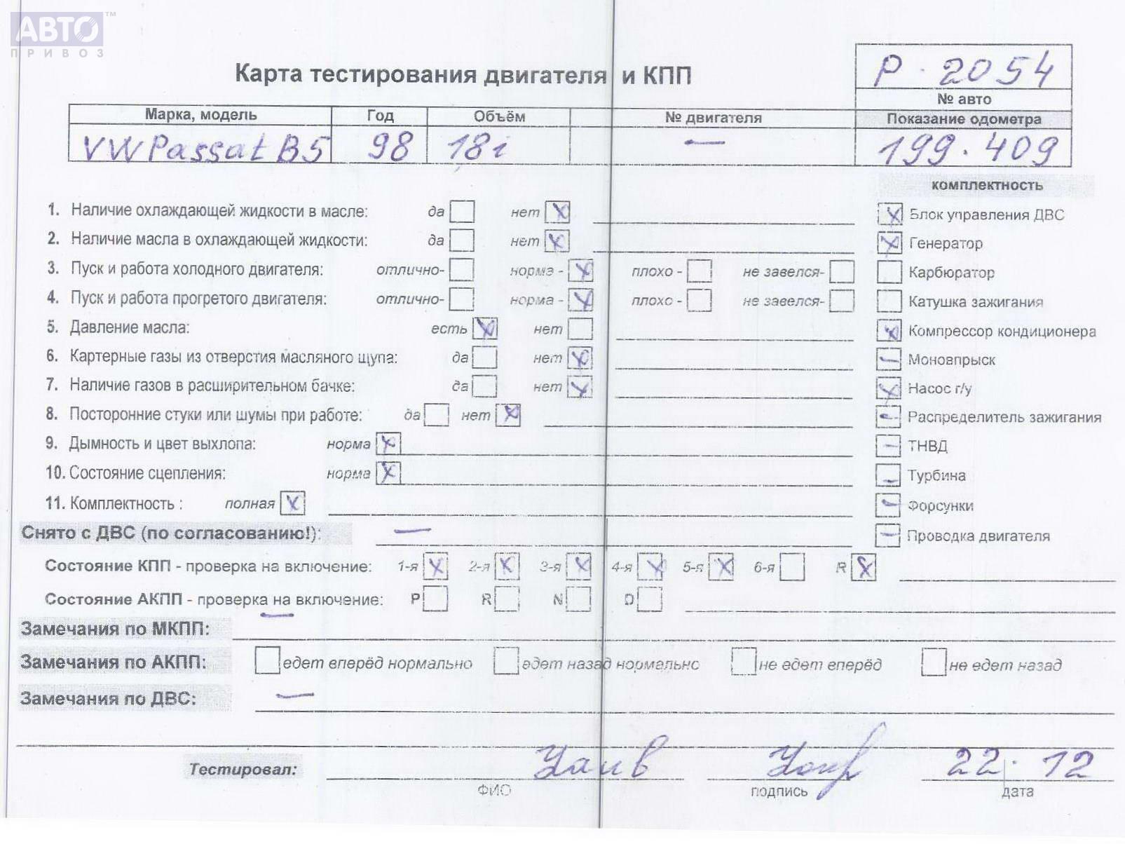 | Марка / Модель / Год: | Volkswagen Passat B5 1998 |