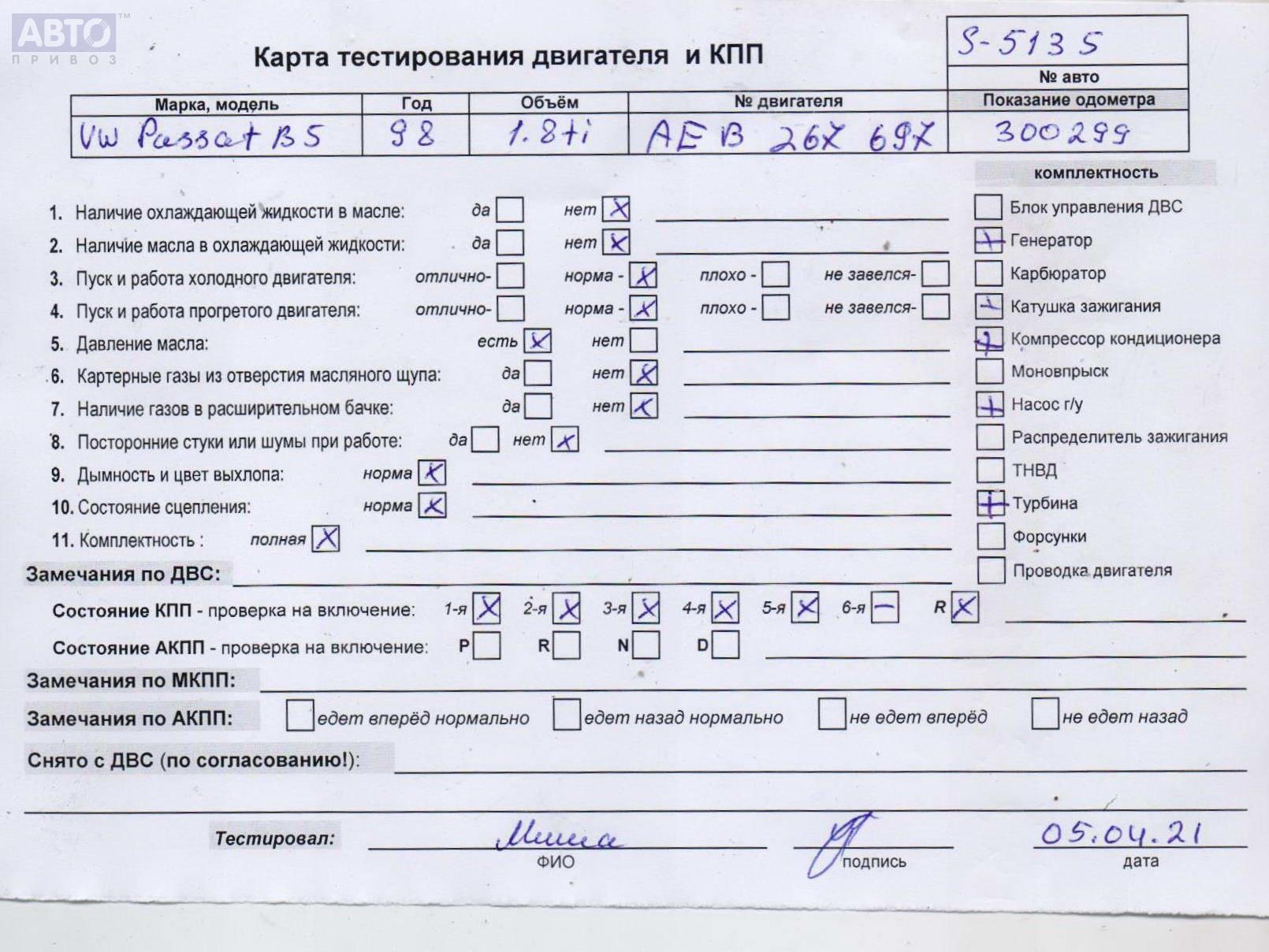 | Марка / Модель / Год: | Volkswagen Passat B5 1998 |
