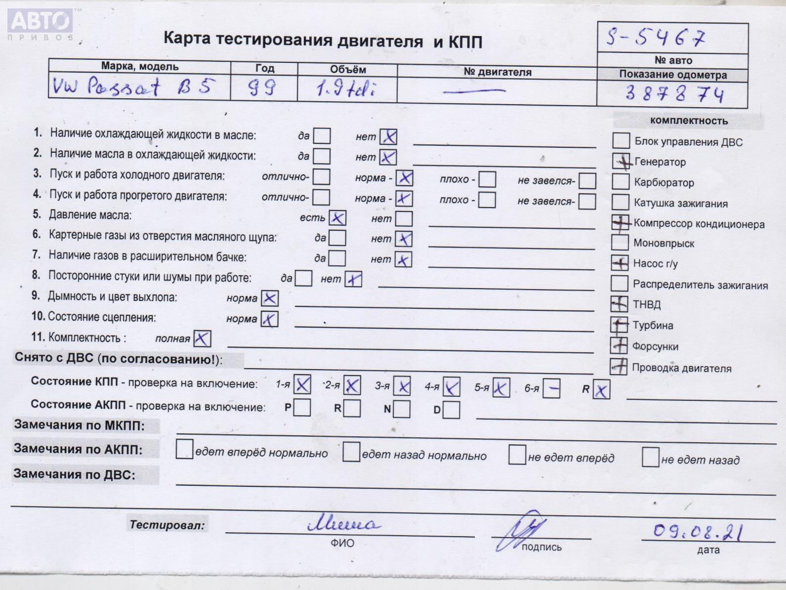 | Марка / Модель / Год: | Volkswagen Passat B5 1999 |