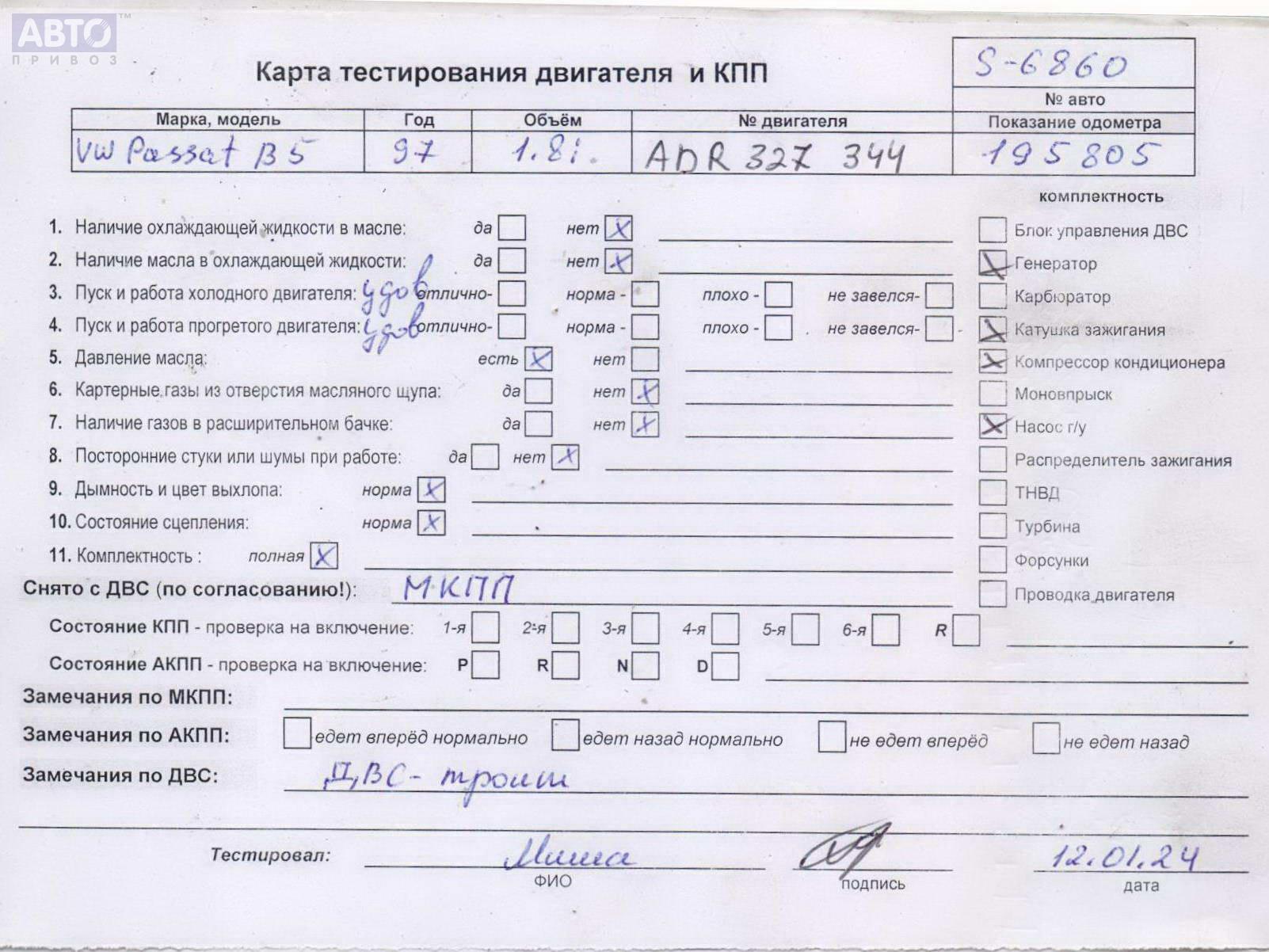 | Марка / Модель / Год: | Volkswagen Passat B5 1997 |
