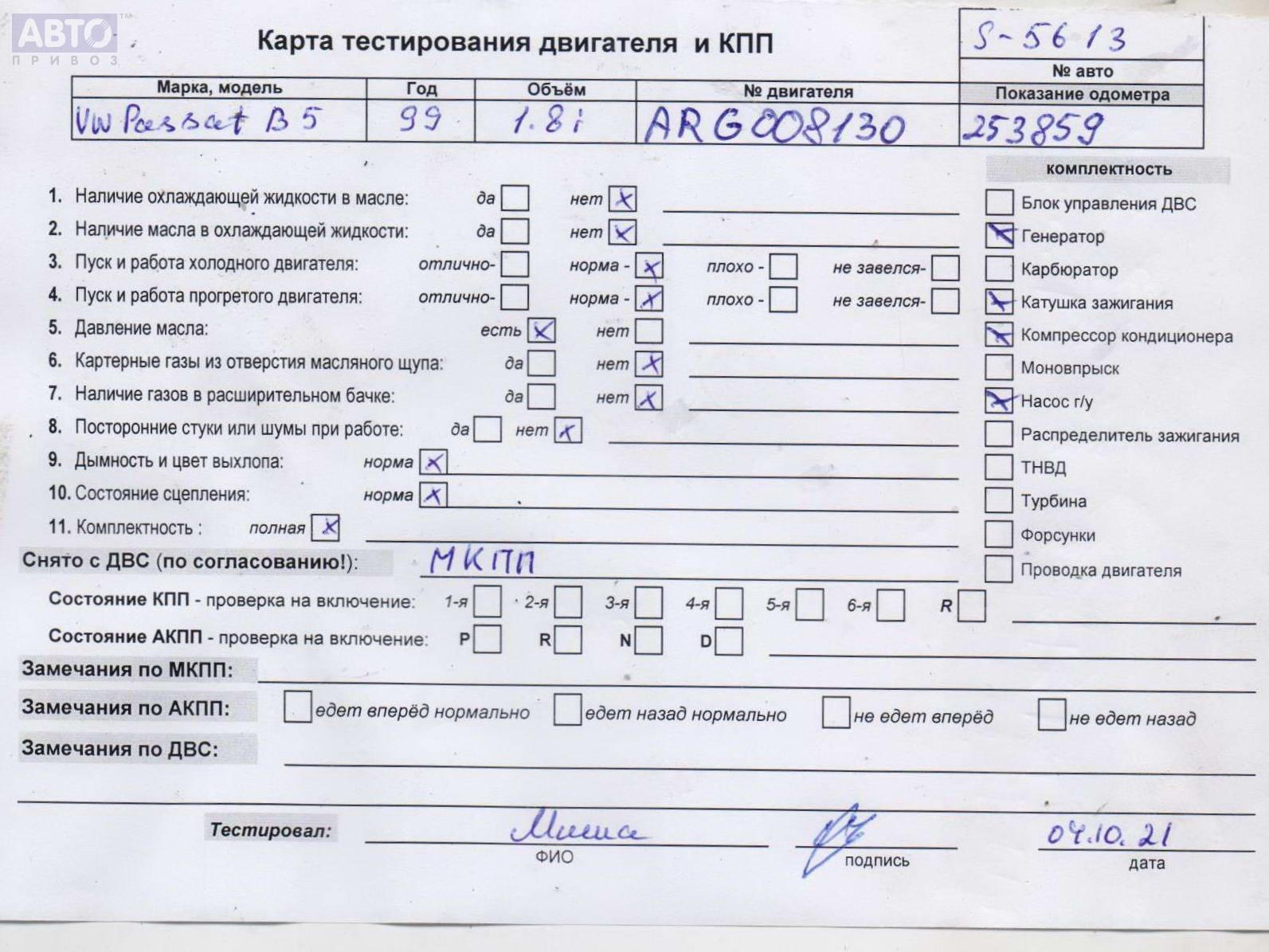 | Марка / Модель / Год: | Volkswagen Passat B5 1999 |