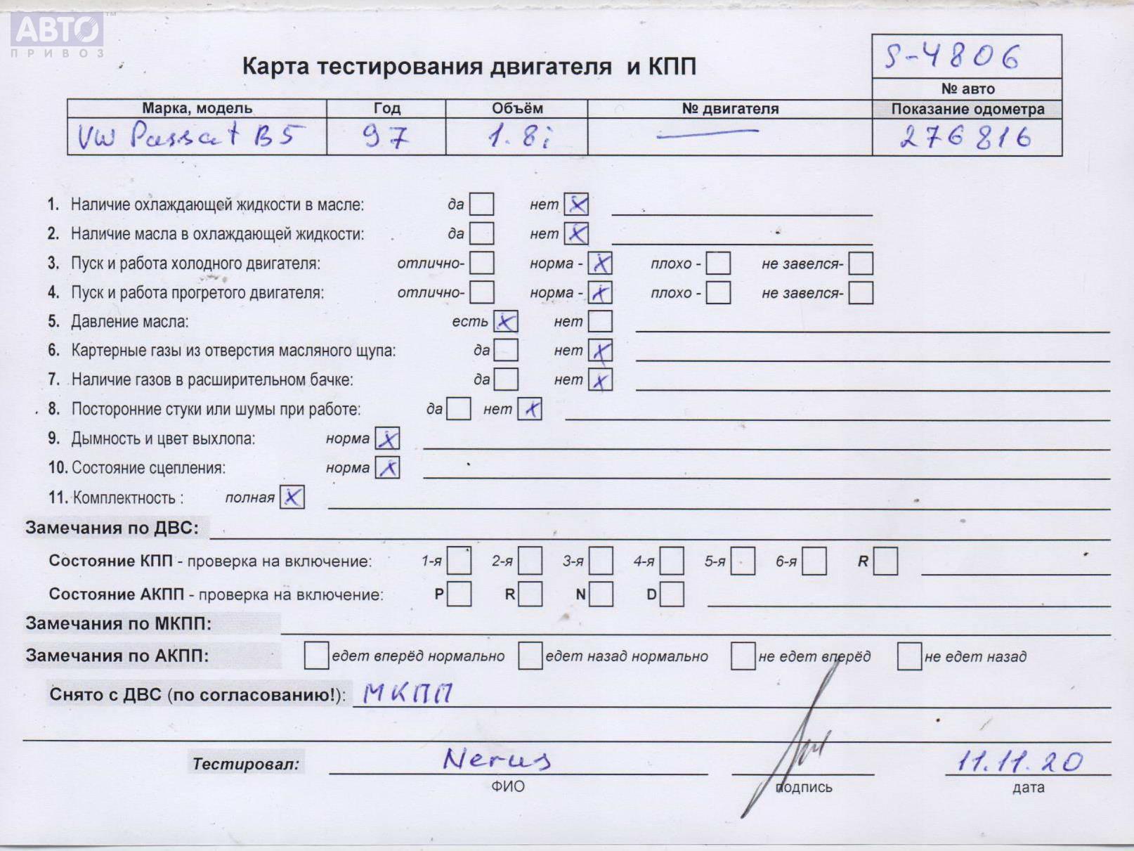 | Марка / Модель / Год: | Volkswagen Passat B5 1997 |