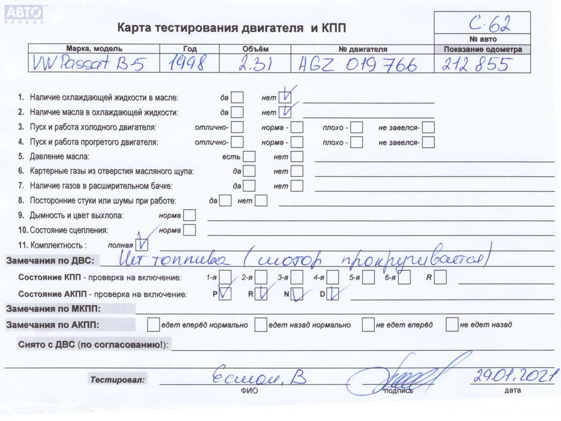 | Марка / Модель / Год: | Volkswagen Passat B5 1998 |