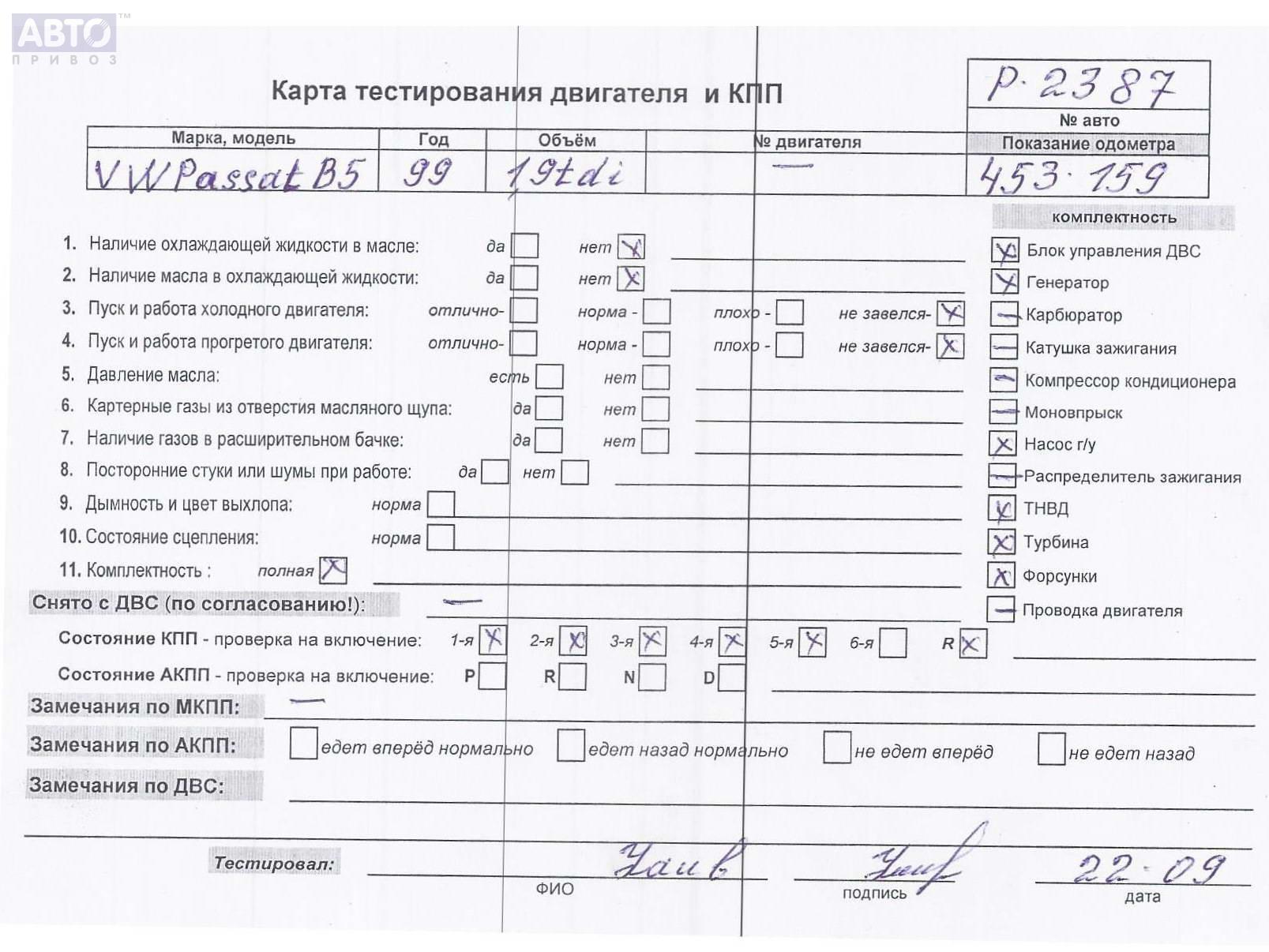 | Марка / Модель / Год: | Volkswagen Passat B5 1999 |