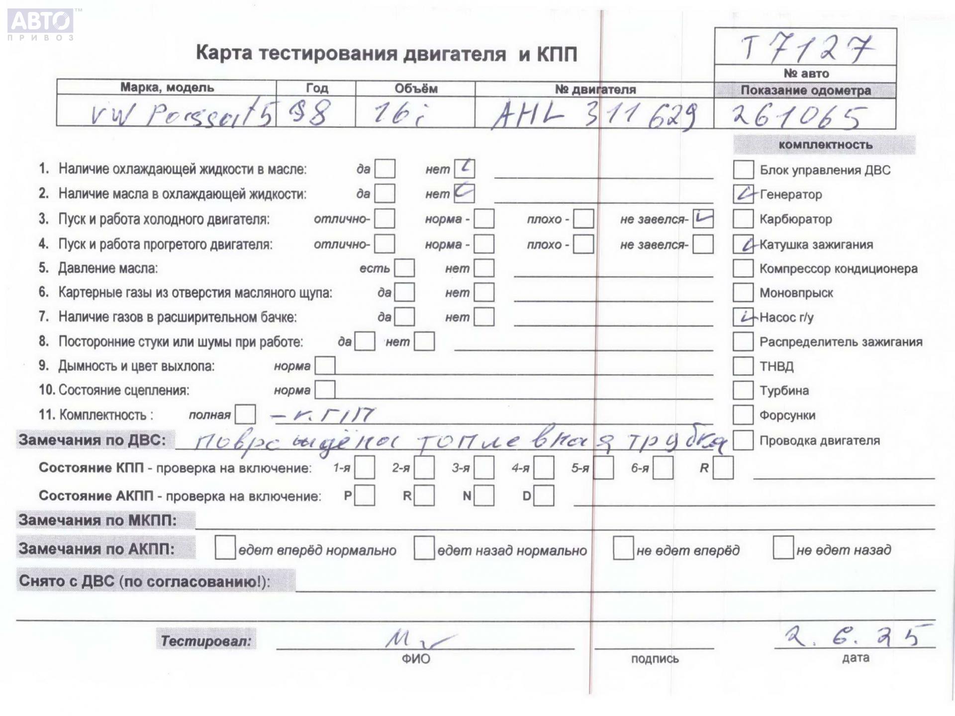 | Марка / Модель / Год: | Volkswagen Passat B5 1998 |