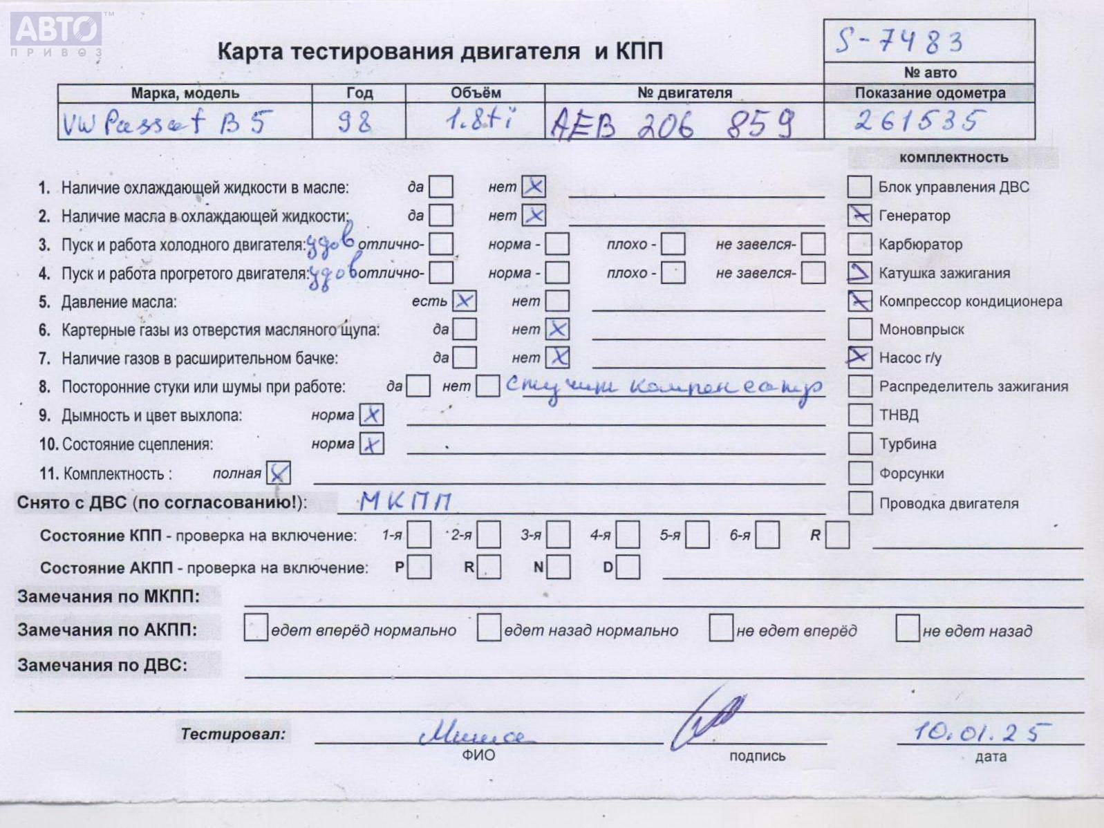 | Марка / Модель / Год: | Volkswagen Passat B5 1998 |