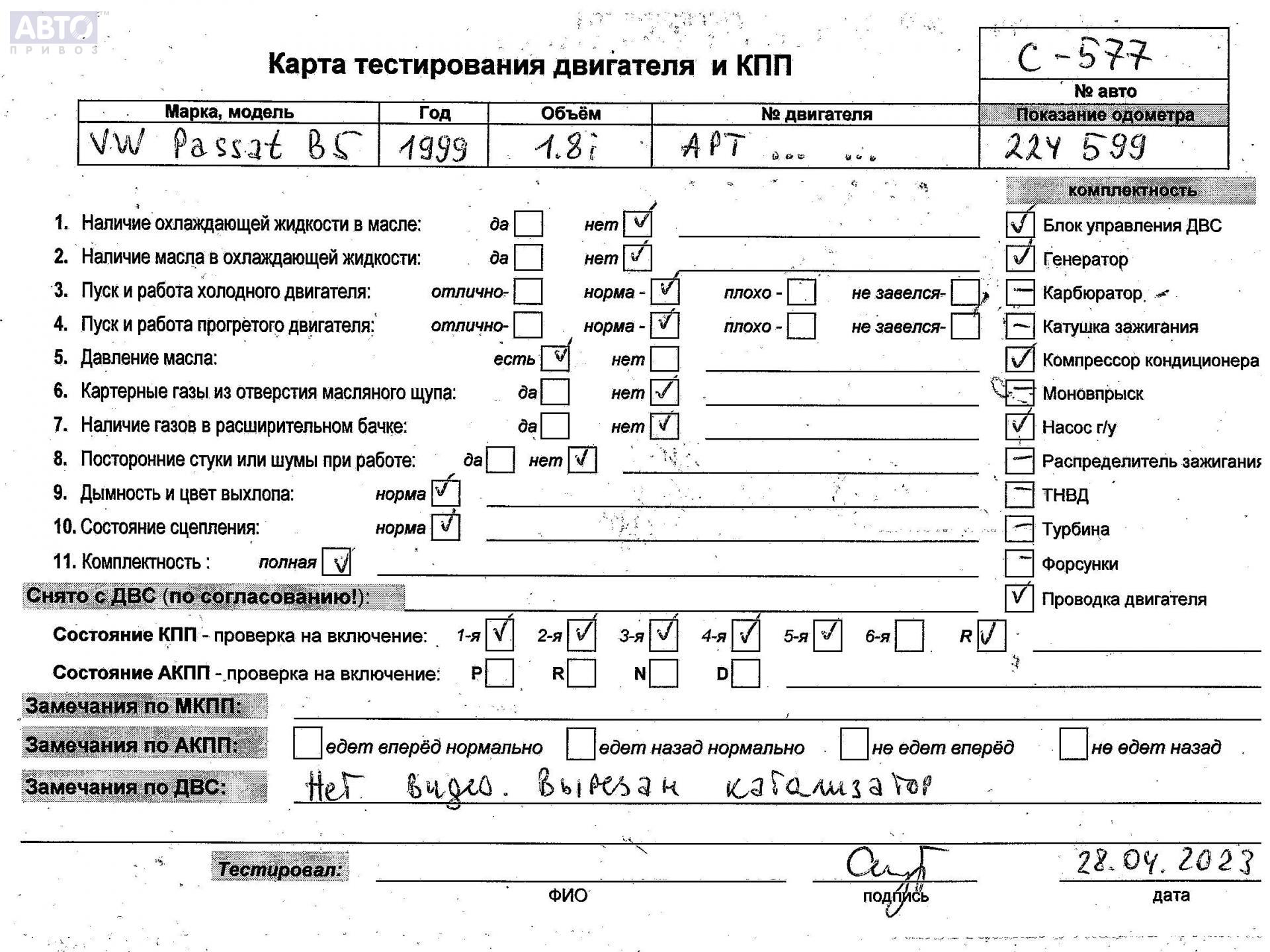 | Марка / Модель / Год: | Volkswagen Passat B5 1999 |