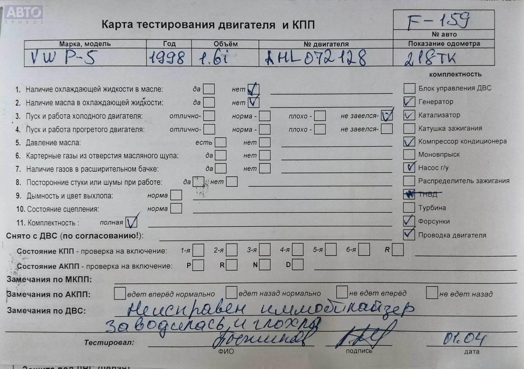 | Марка / Модель / Год: | Volkswagen Passat B5 1997 |