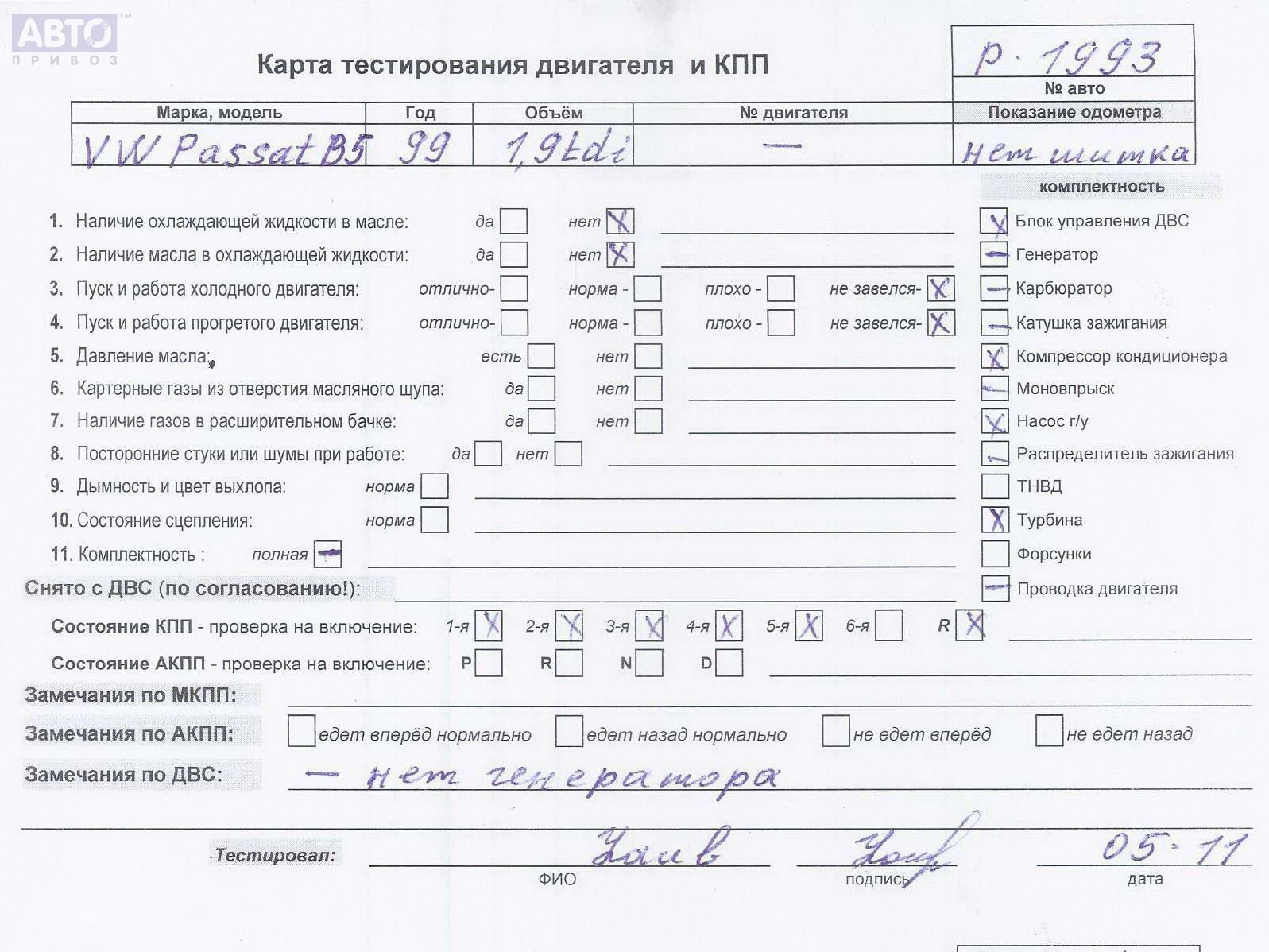 | Марка / Модель / Год: | Volkswagen Passat B5 1999 |