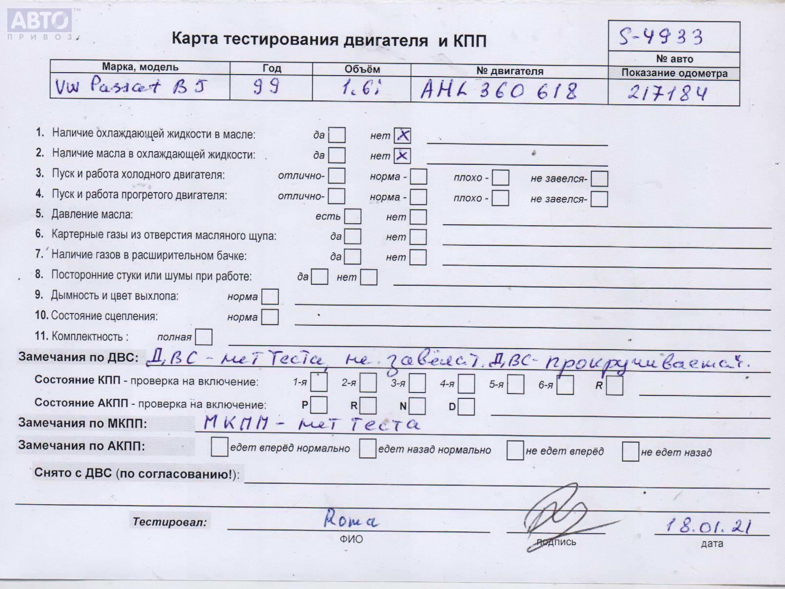 | Марка / Модель / Год: | Volkswagen Passat B5 1999 |