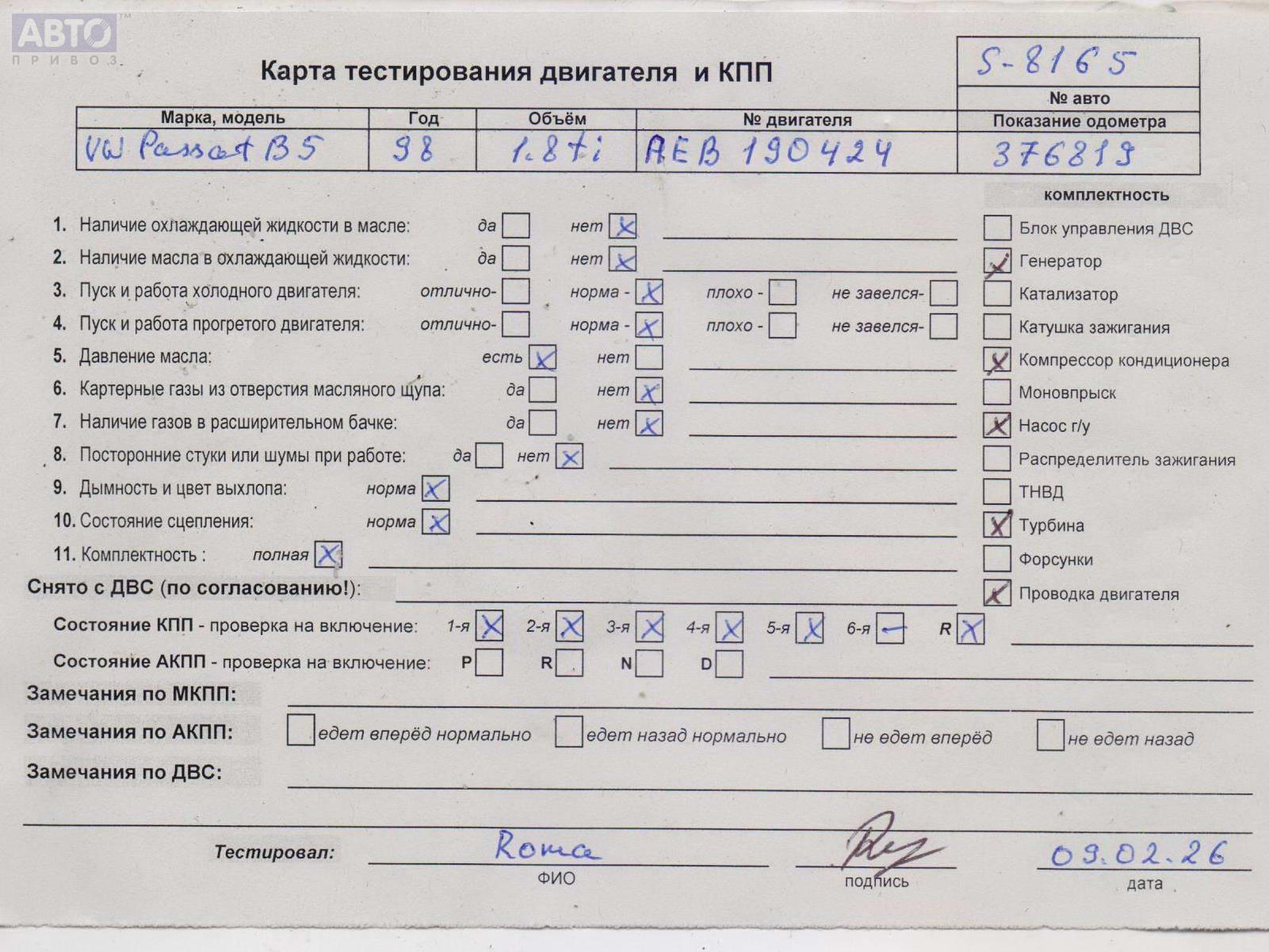 | Марка / Модель / Год: | Volkswagen Passat B5 1998 |