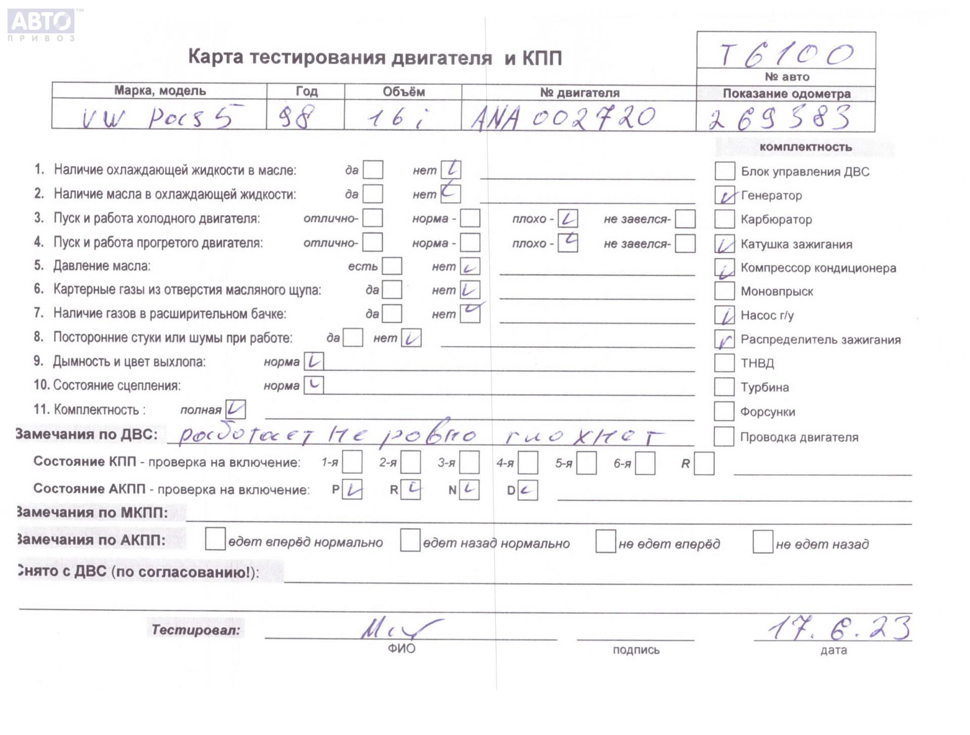 | Автомобиль / VIN: | T6100 WVWZZZ3BZYE129570 |