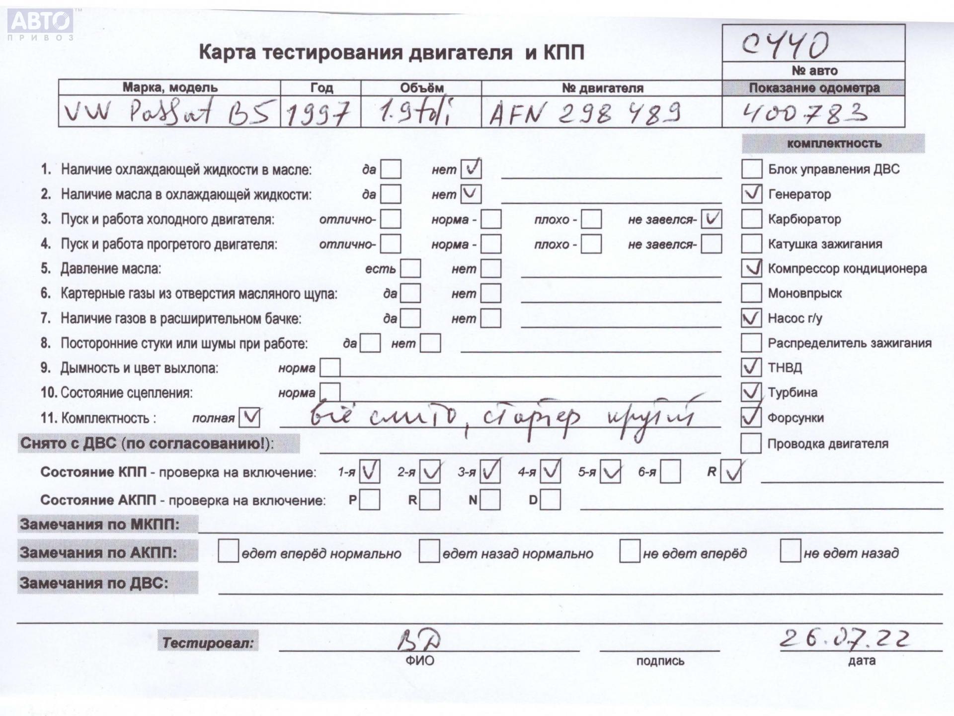 | Марка / Модель / Год: | Volkswagen Passat B5 1997 |