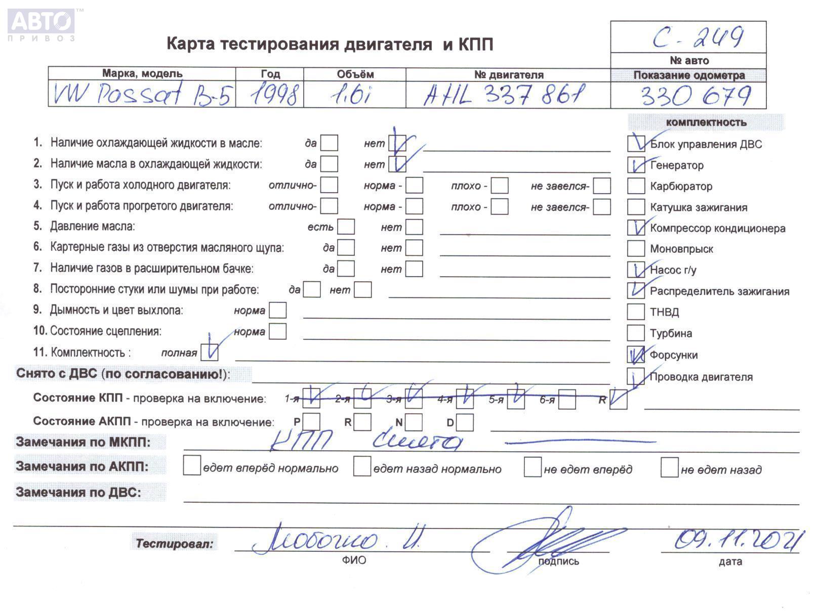 | Марка / Модель / Год: | Volkswagen Passat B5 1998 |