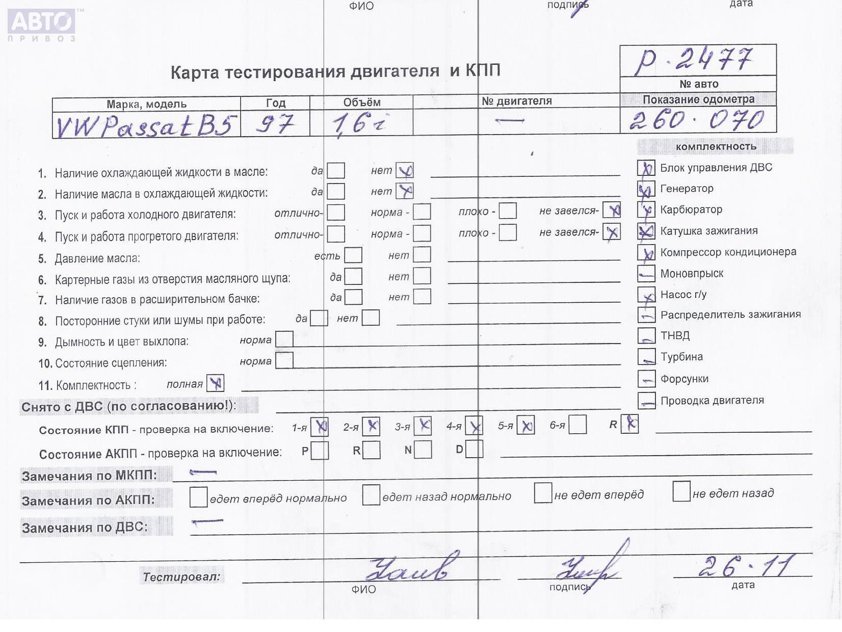 | Марка / Модель / Год: | Volkswagen Passat B5 1997 |