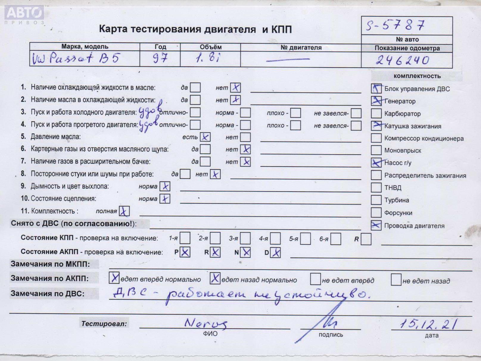 | Марка / Модель / Год: | Volkswagen Passat B5 1997 |