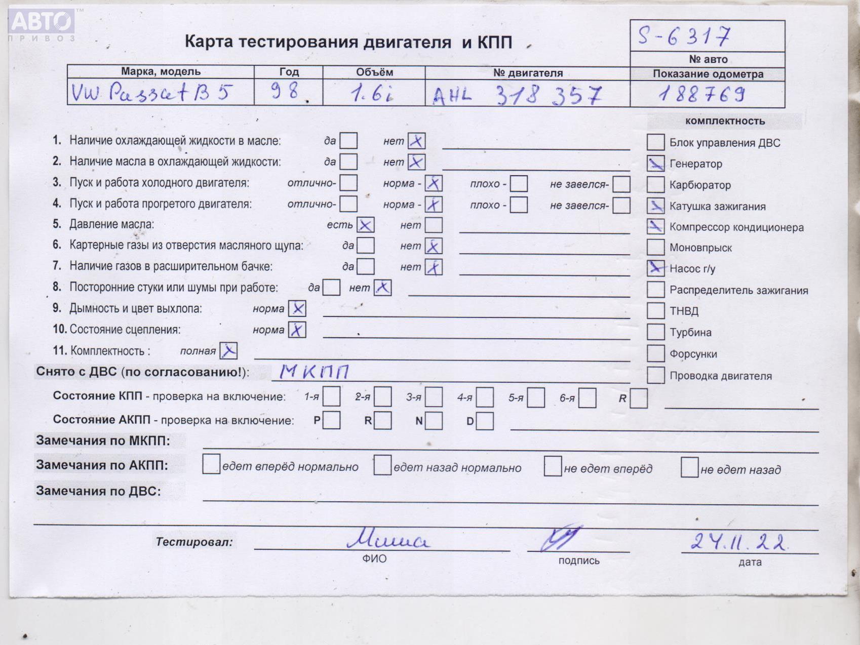 | Марка / Модель / Год: | Volkswagen Passat B5 1998 |