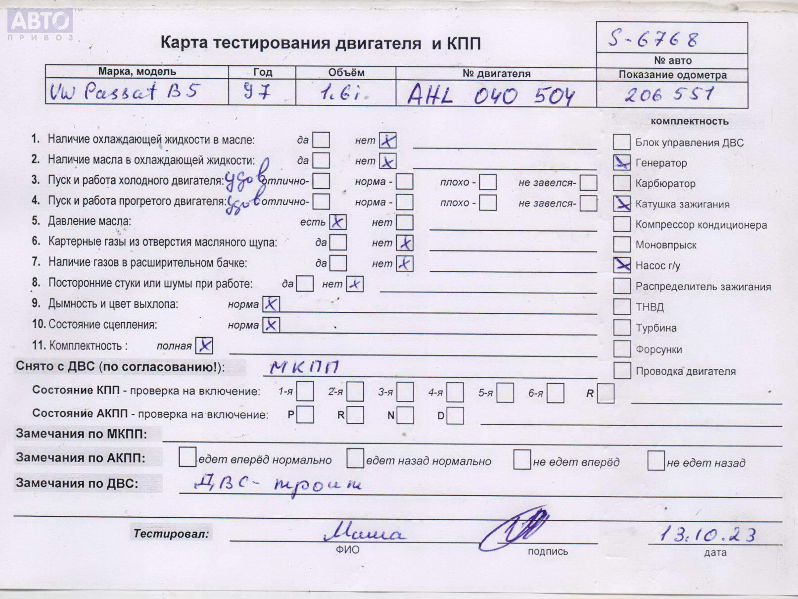 | Марка / Модель / Год: | Volkswagen Passat B5 1997 |
