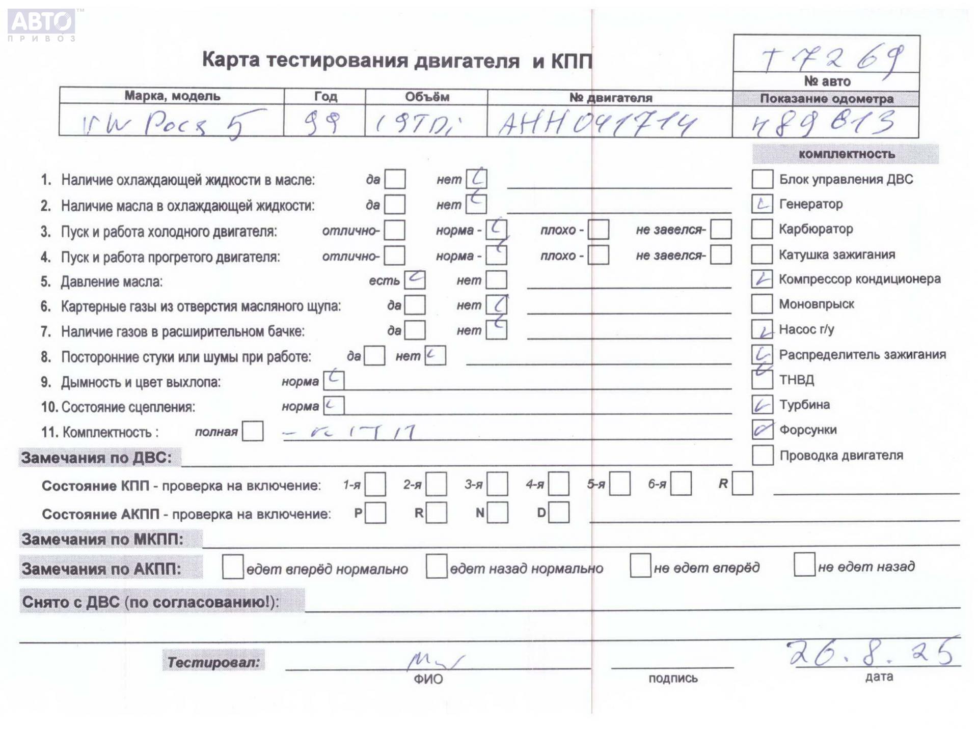 | Марка / Модель / Год: | Volkswagen Passat B5 1999 |