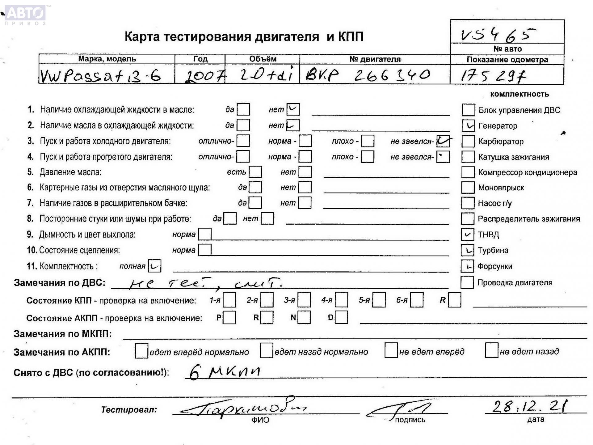| Марка / Модель / Год: | Volkswagen Passat B6 2007 |
