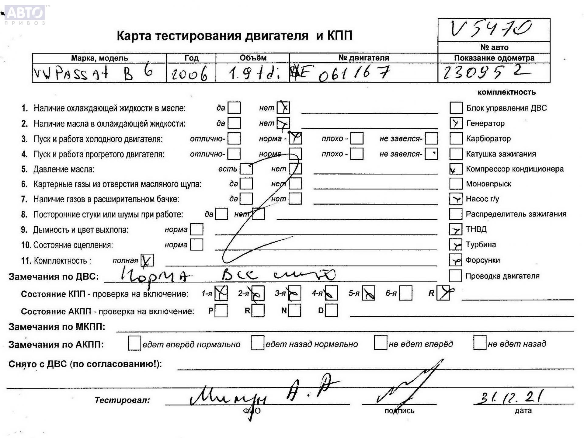 | Марка / Модель / Год: | Volkswagen Passat B6 2006 |