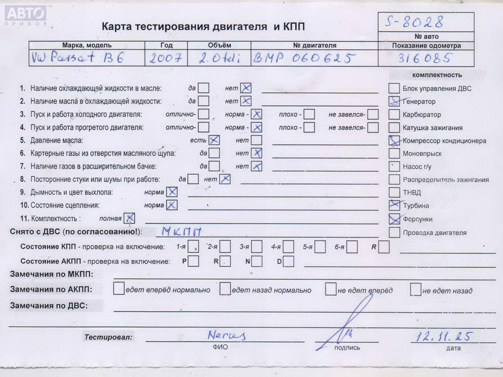 | Марка / Модель / Год: | Volkswagen Passat B6 2007 |