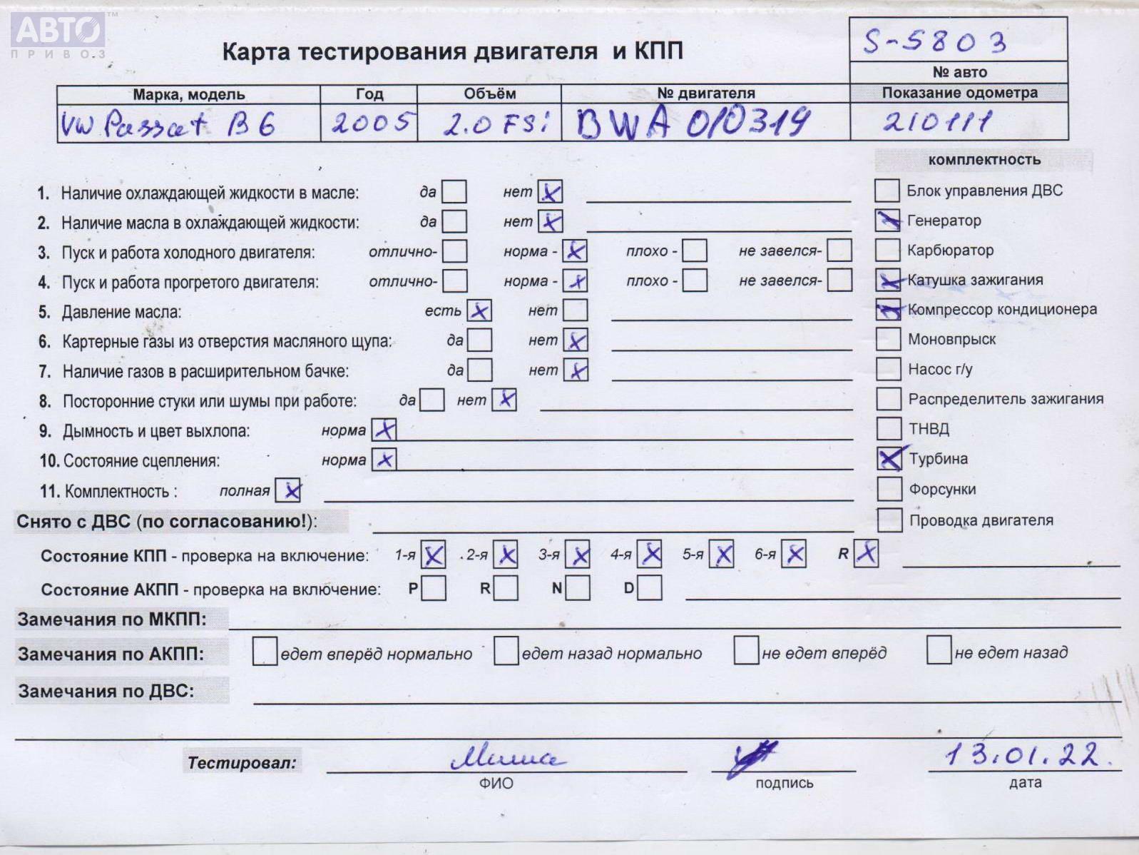 | Марка / Модель / Год: | Volkswagen Passat B6 2005 |