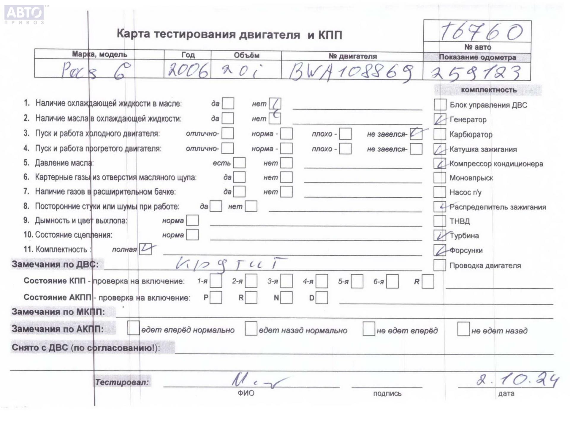 | Марка / Модель / Год: | Volkswagen Passat B6 2006 |