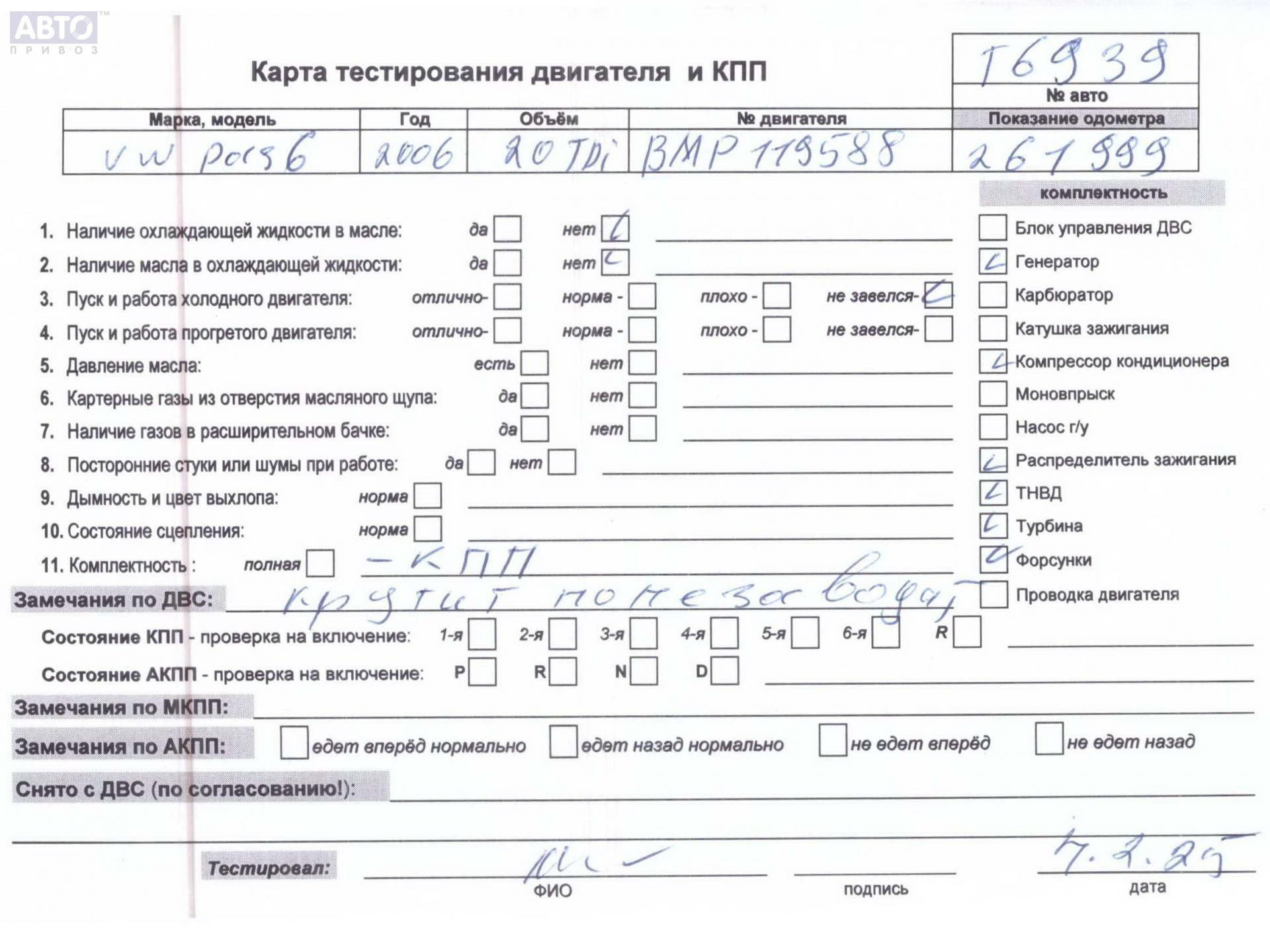 | Автомобиль / VIN: | T6939 WVWZZZ3CZ7E095372 |
