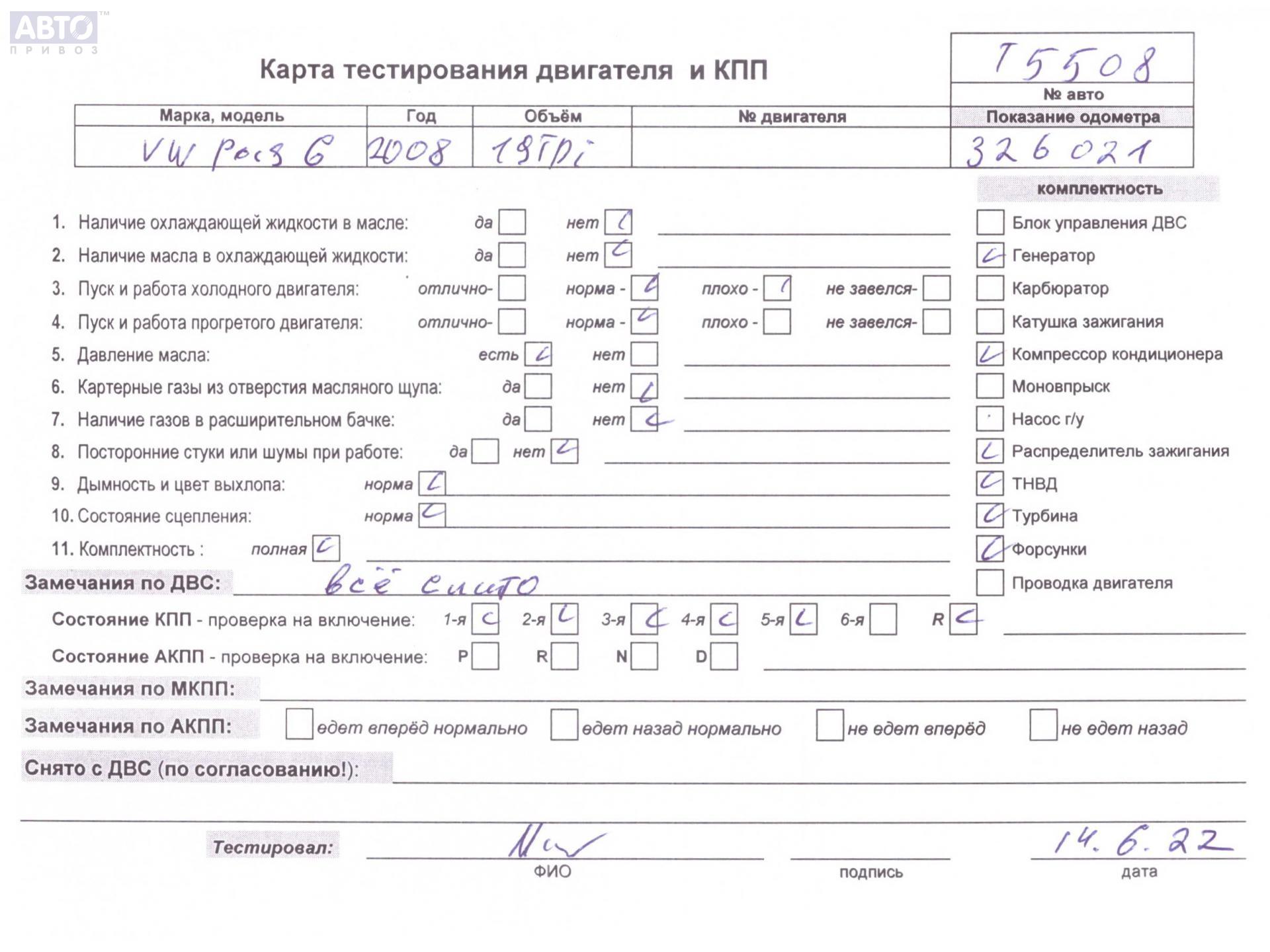 | Марка / Модель / Год: | Volkswagen Passat B6 2008 |