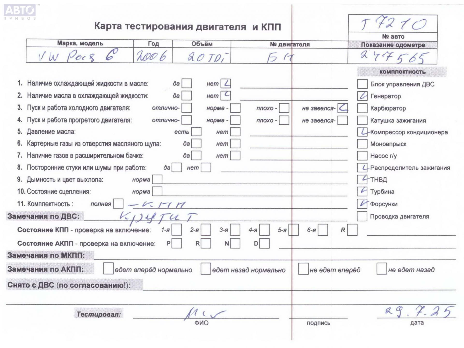| Автомобиль / VIN: | T7210 WVWZZZ3CZ7E019653 |
