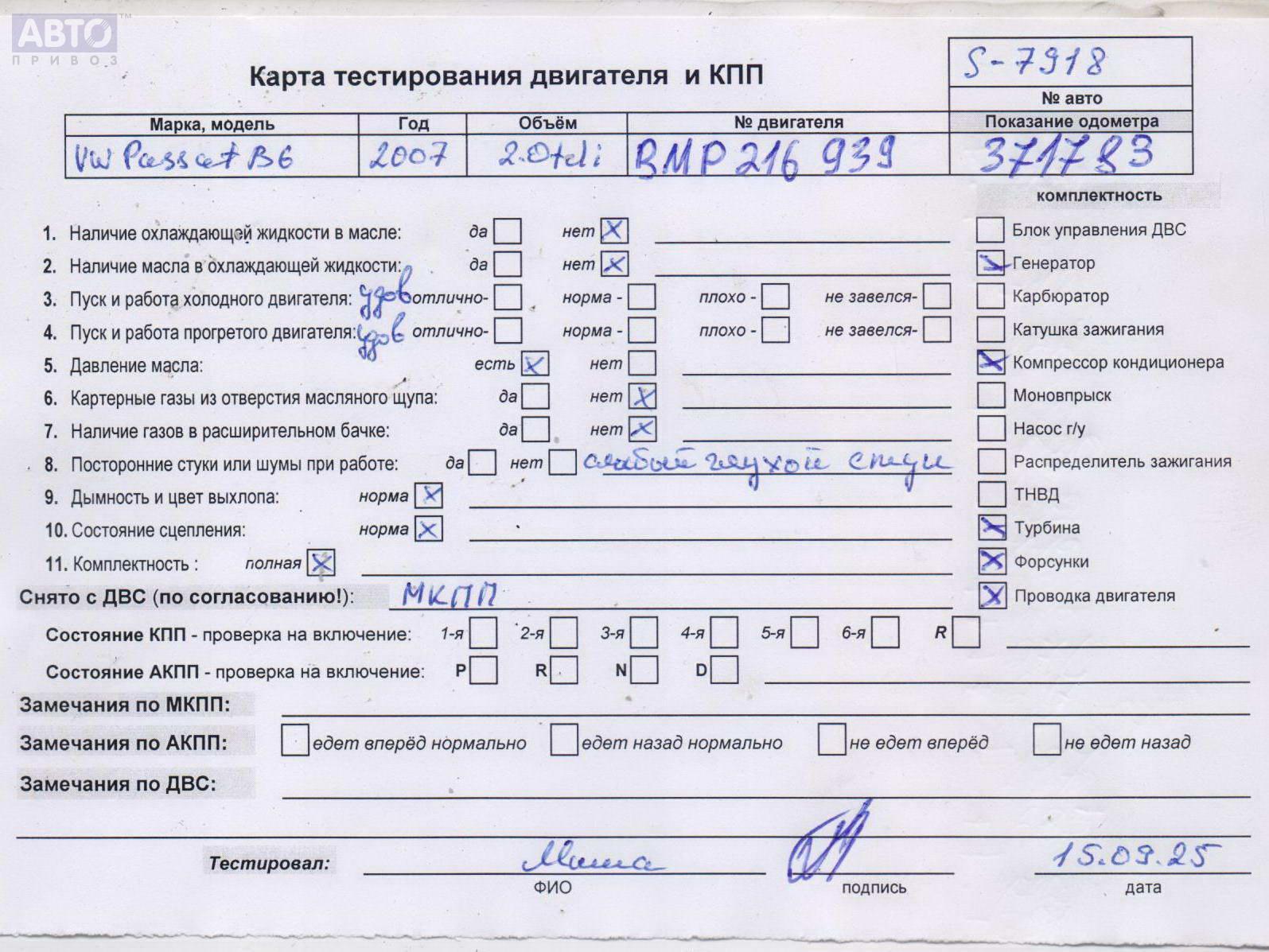 | Марка / Модель / Год: | Volkswagen Passat B6 2007 |