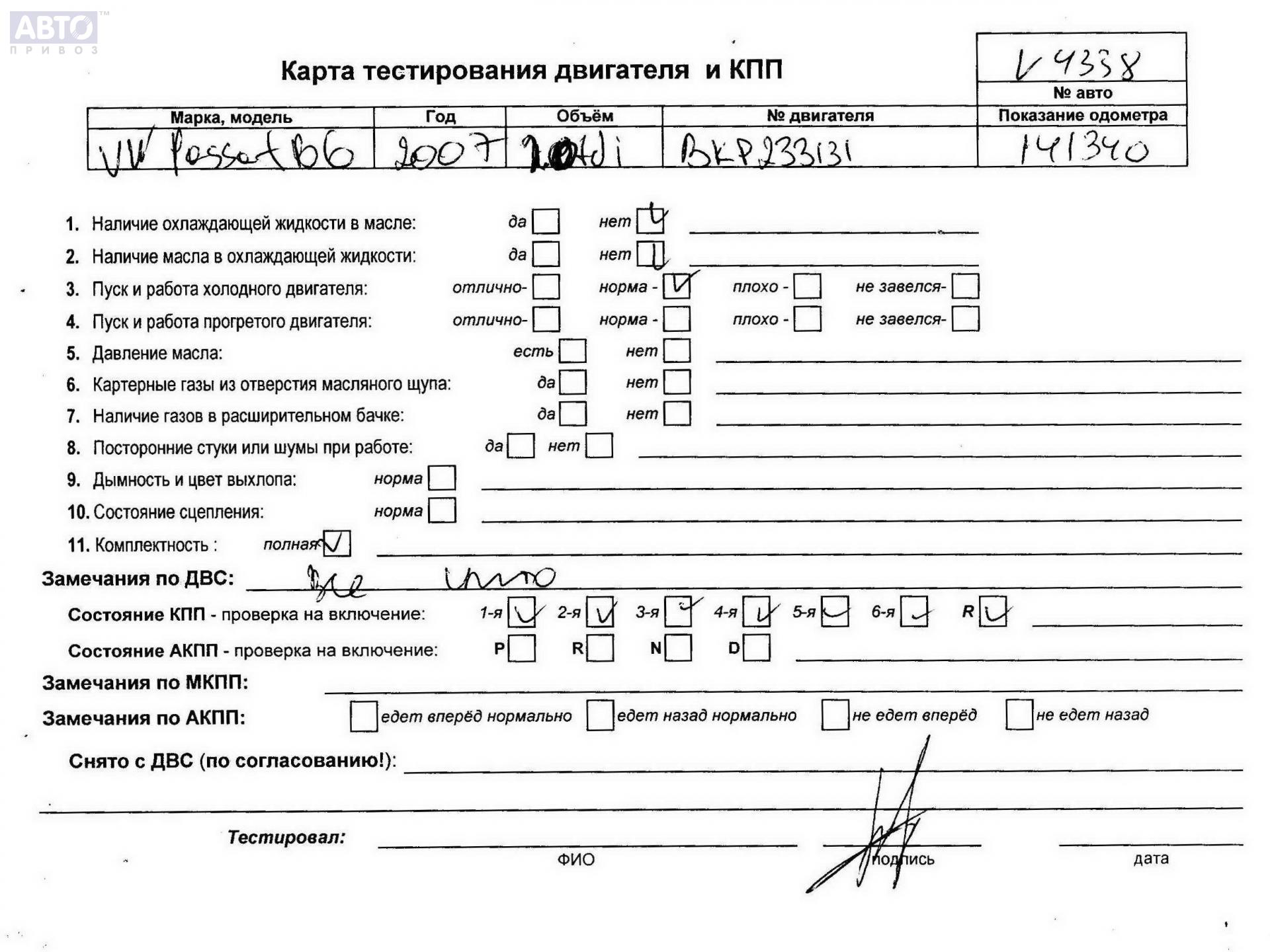 | Марка / Модель / Год: | Volkswagen Passat B6 2007 |