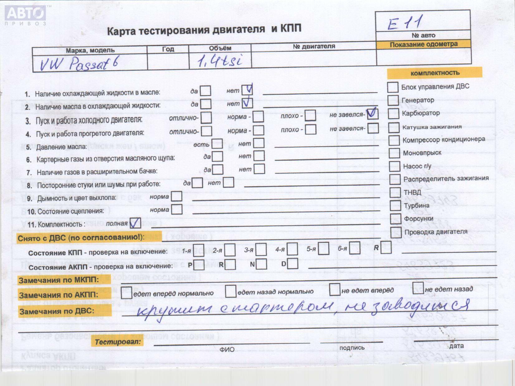 | Марка / Модель / Год: | Volkswagen Passat B6 2009 |