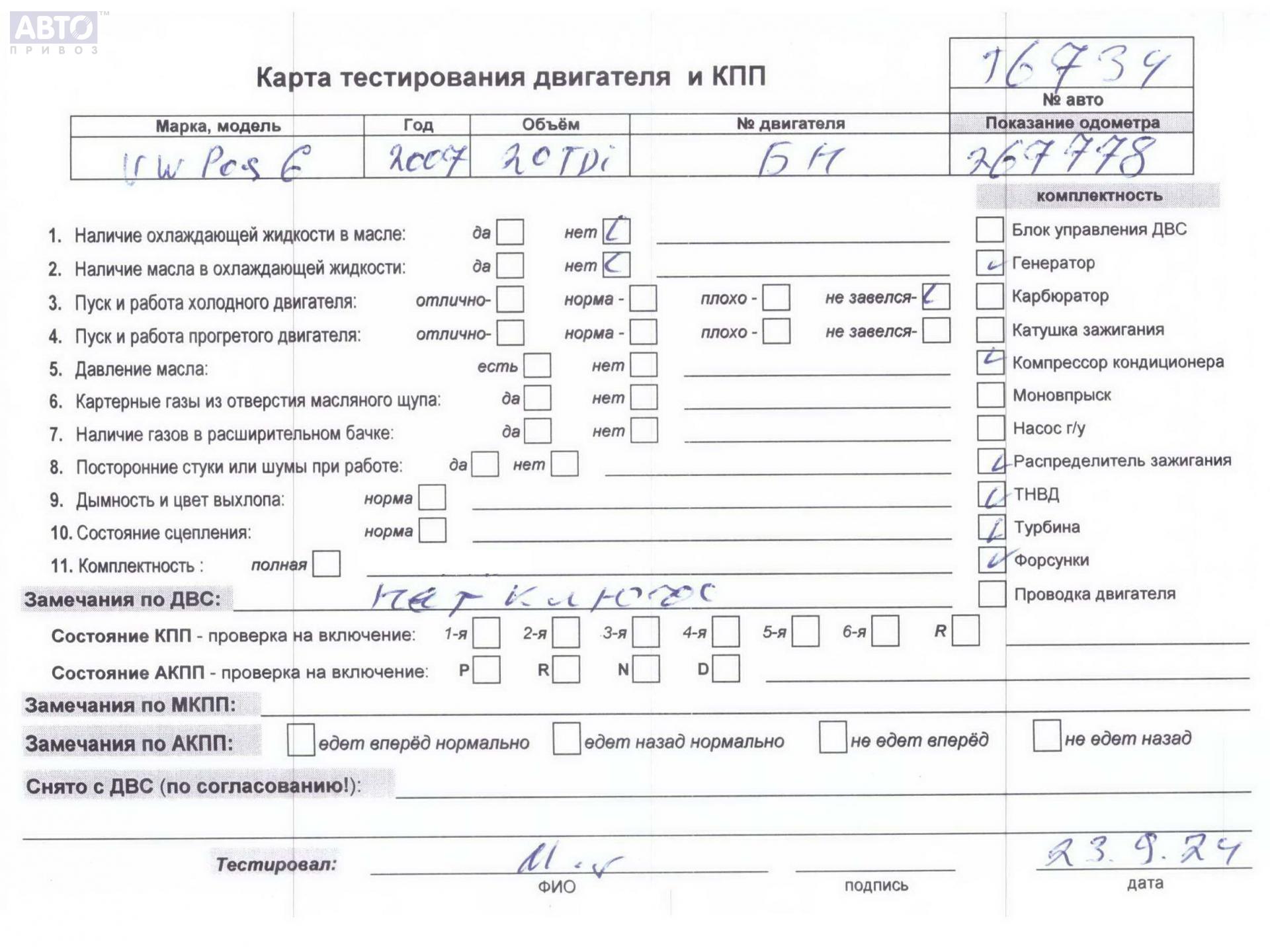 | Марка / Модель / Год: | Volkswagen Passat B6 2007 |