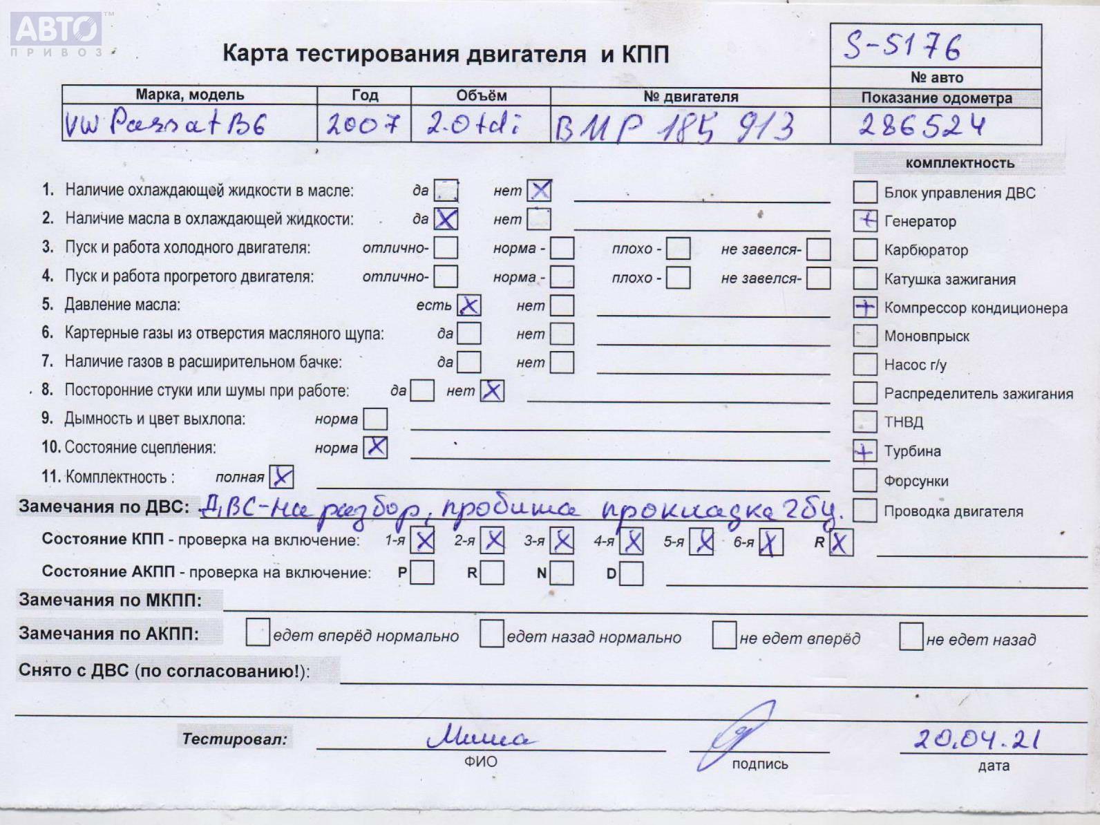 | Марка / Модель / Год: | Volkswagen Passat B6 2007 |