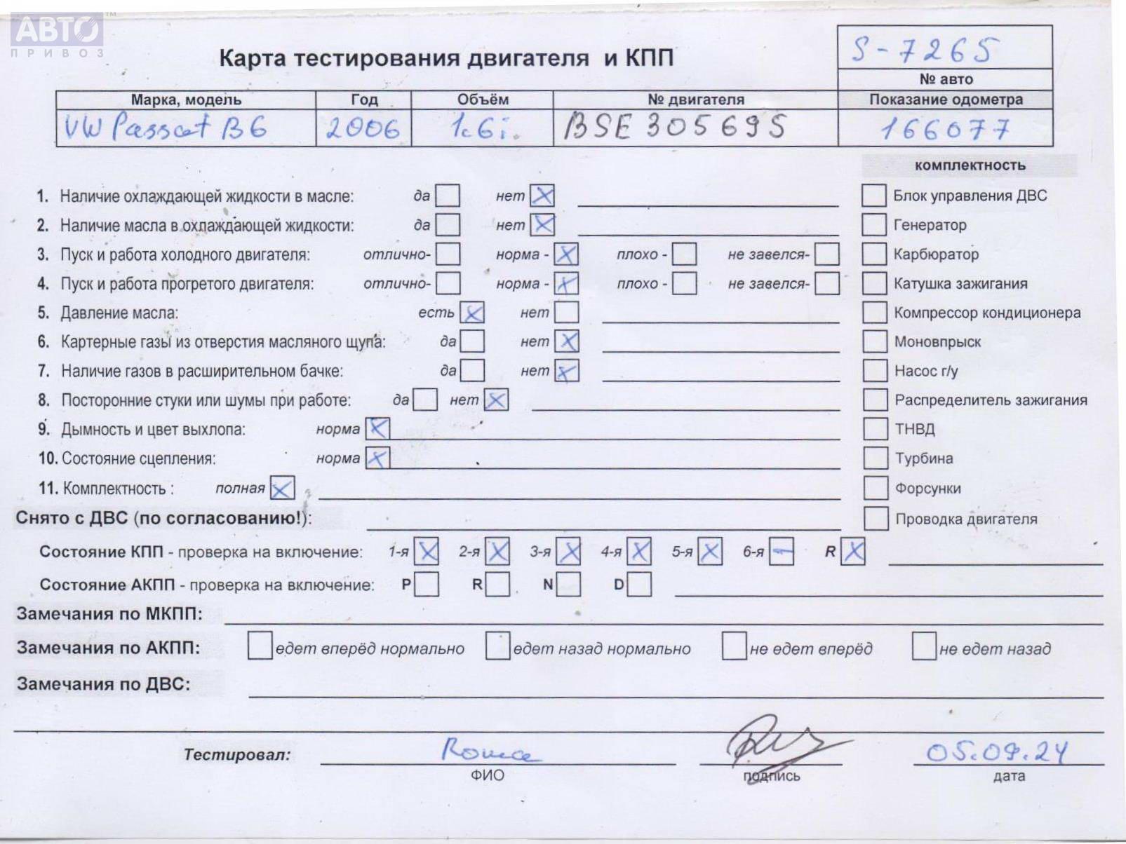 | Марка / Модель / Год: | Volkswagen Passat B6 2006 |