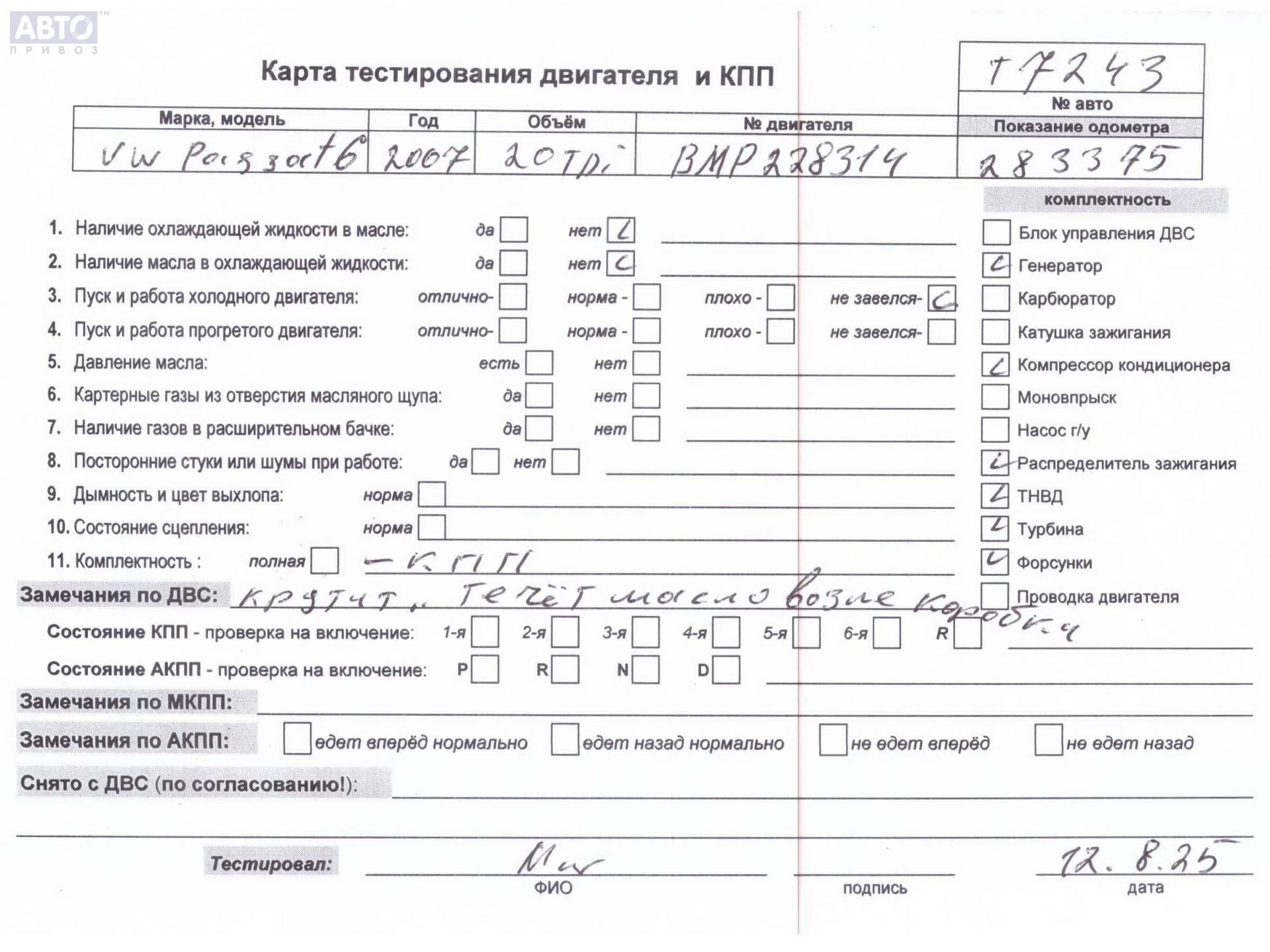 | Марка / Модель / Год: | Volkswagen Passat B6 2007 |
