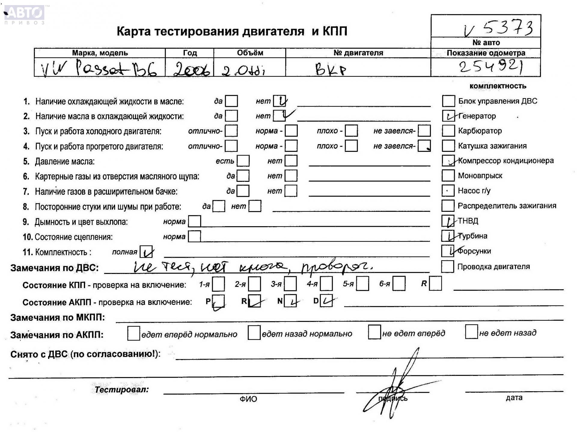 | Марка / Модель / Год: | Volkswagen Passat B6 2006 |