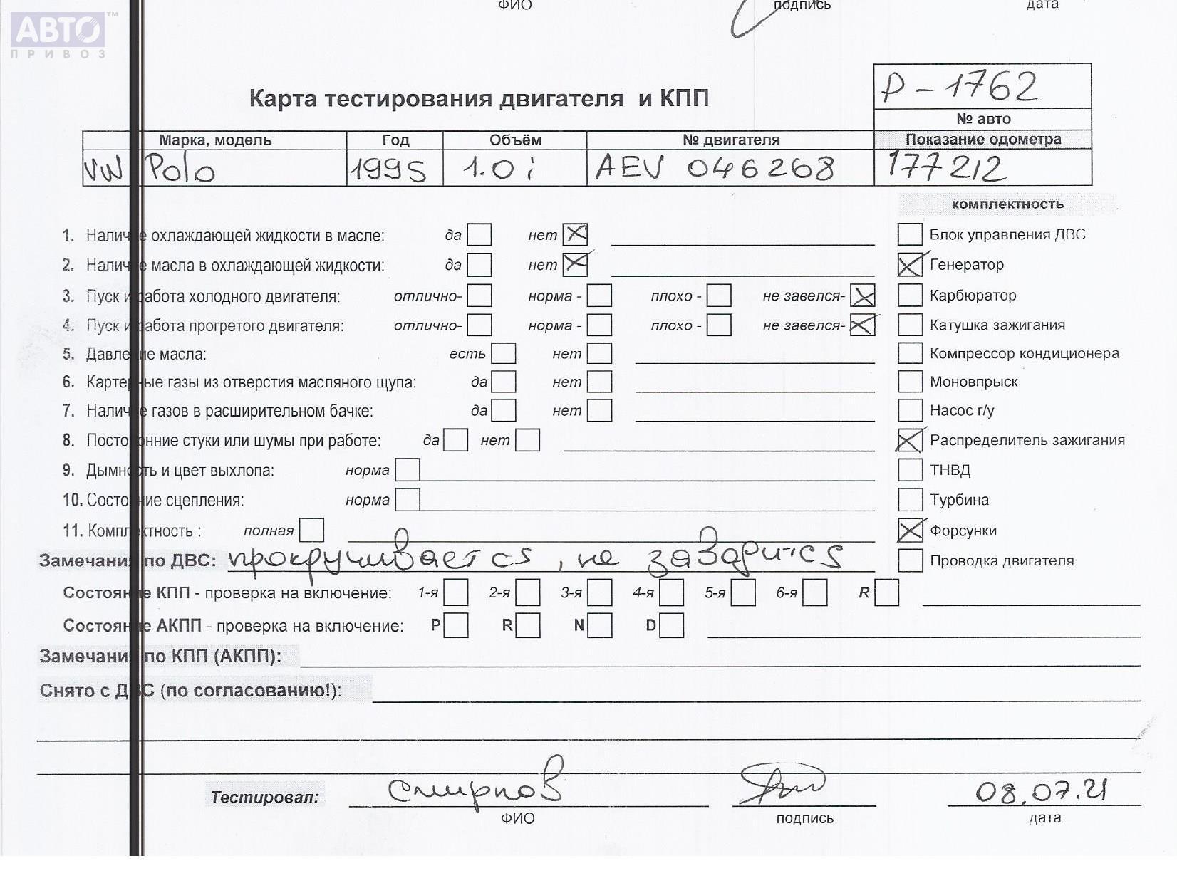 | Марка / Модель / Год: | Volkswagen Polo (1994-1999) 1995 |