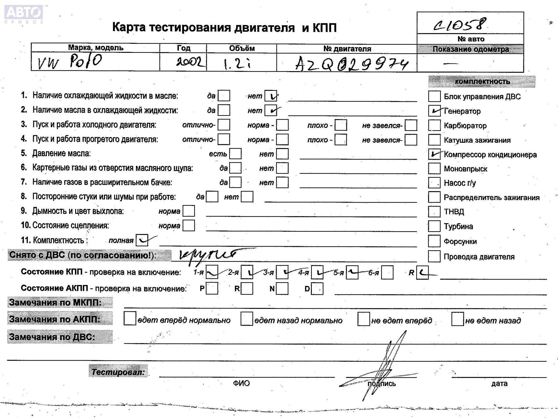 | Автомобиль / VIN: | C1058 WVWZZZ9NZ2Y047600 |