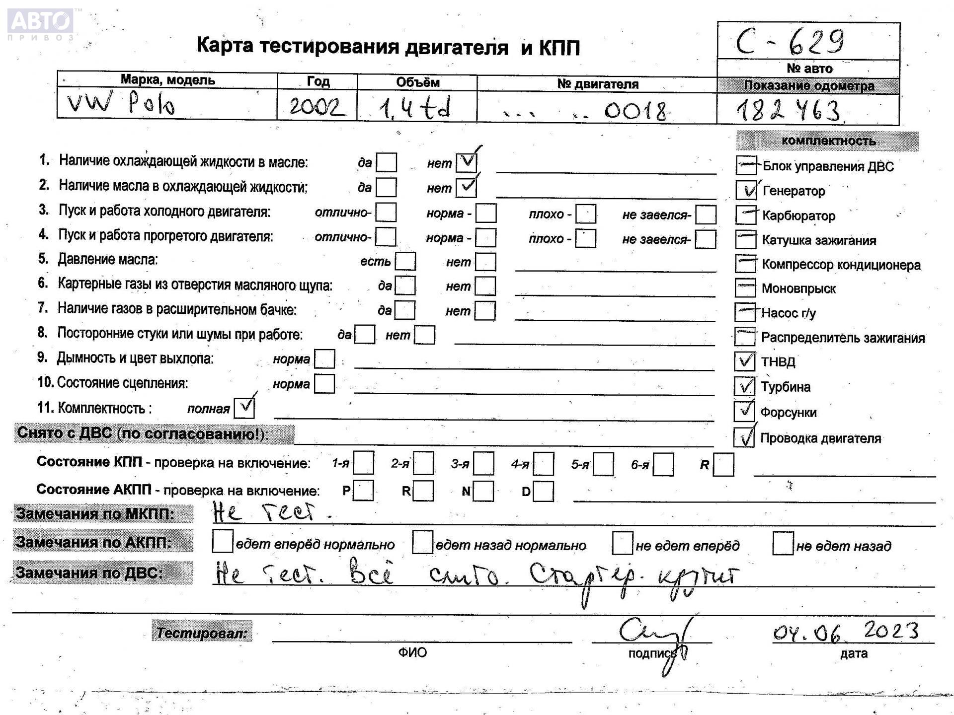 | Марка / Модель / Год: | Volkswagen Polo (2001-2005) 2002 |