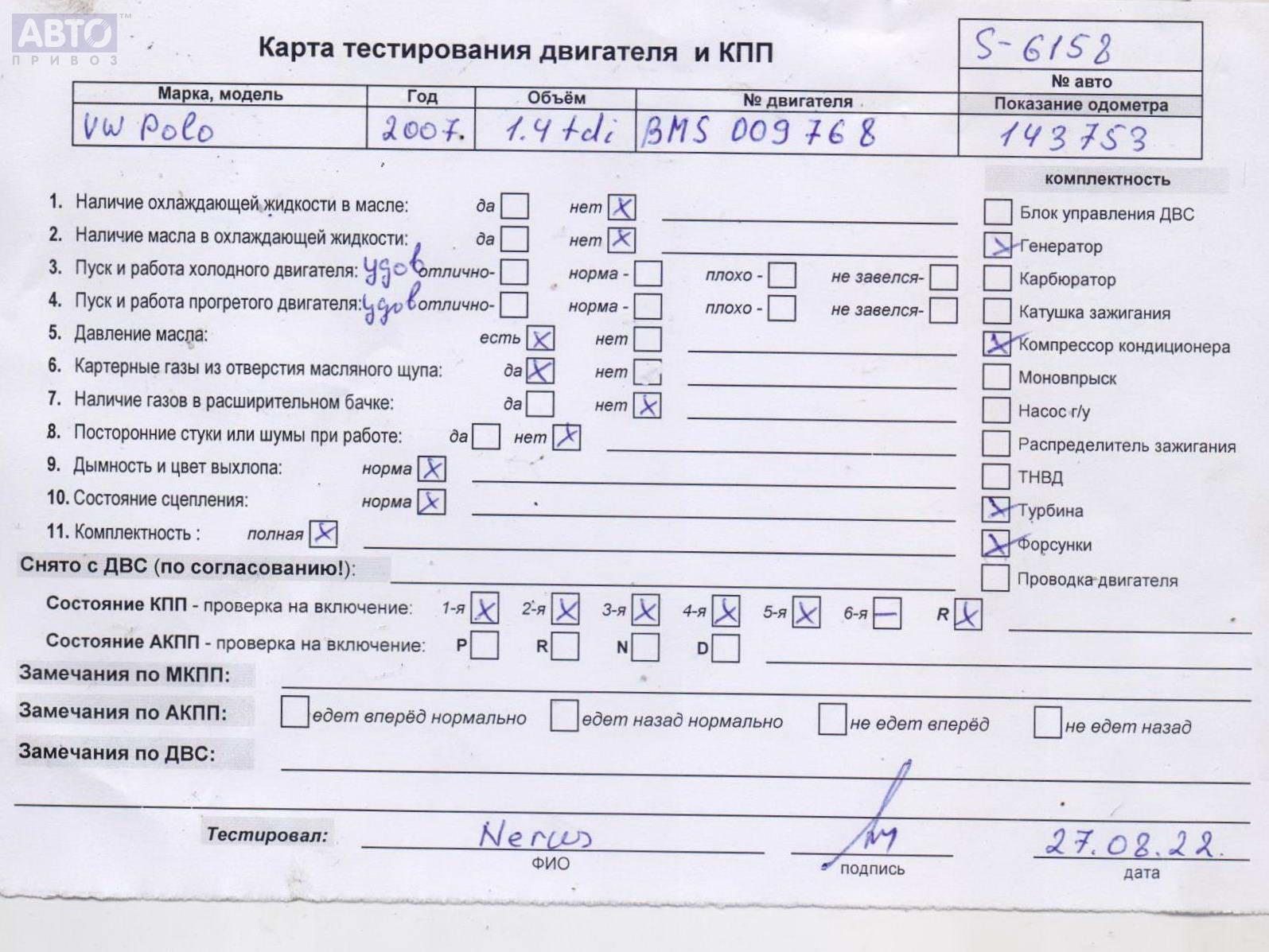 | Марка / Модель / Год: | Volkswagen Polo (2005-2009) 2007 |
