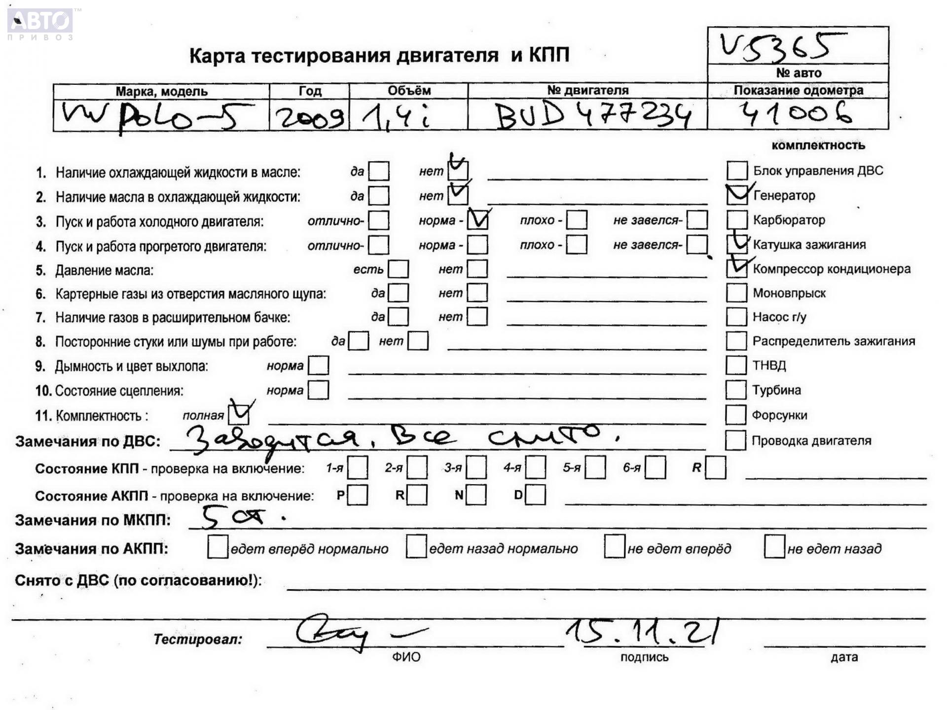 | Марка / Модель / Год: | Volkswagen Polo (2005-2009) 2009 |