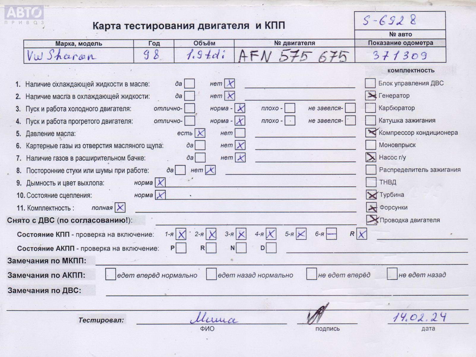 | Марка / Модель / Год: | Volkswagen Sharan (1995-2000) 1998 |