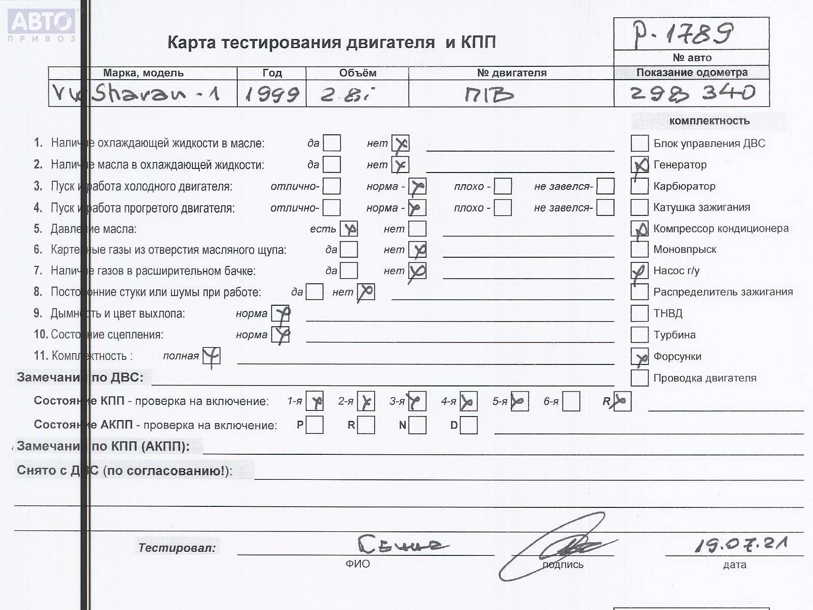 | Марка / Модель / Год: | Volkswagen Sharan (1995-2000) 1999 |