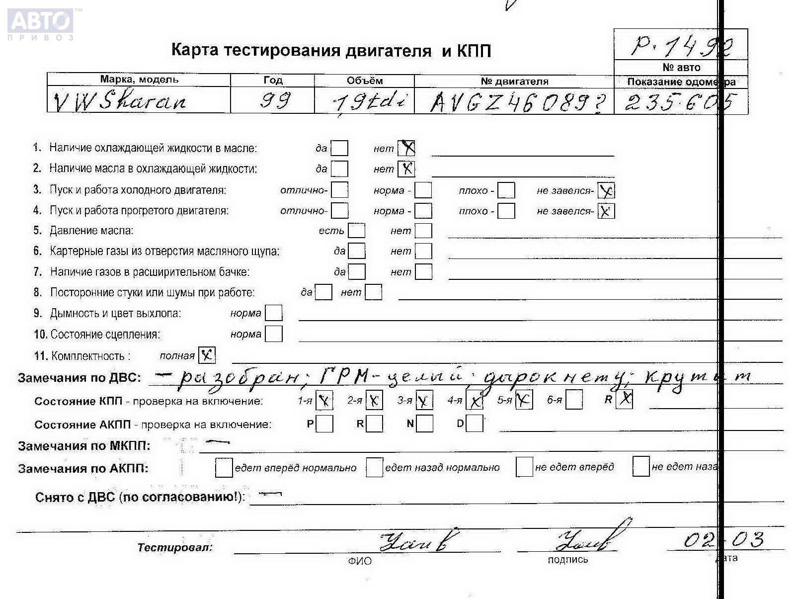 | Автомобиль / VIN: | P1492 WVWZZZ7MZYV027899 |
